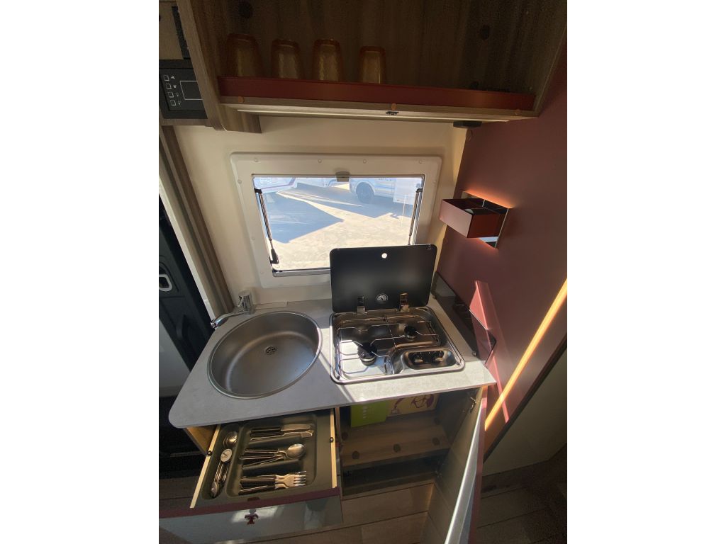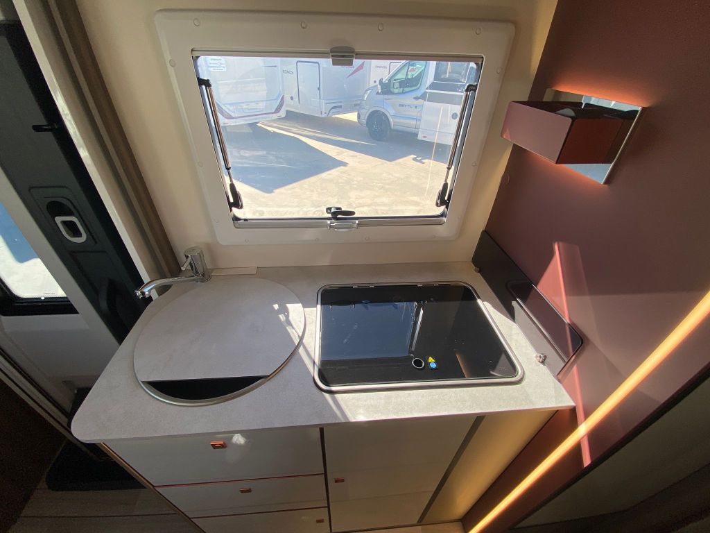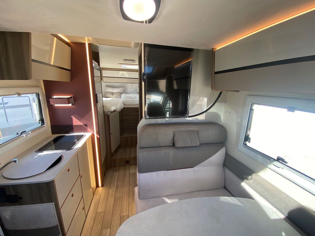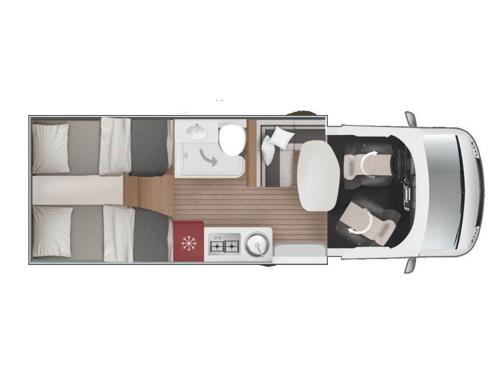 Autocaravana perfilada compacta de camas gemelas para 4 personas en 6,99 metros con el siguiente equipamiento opcional: