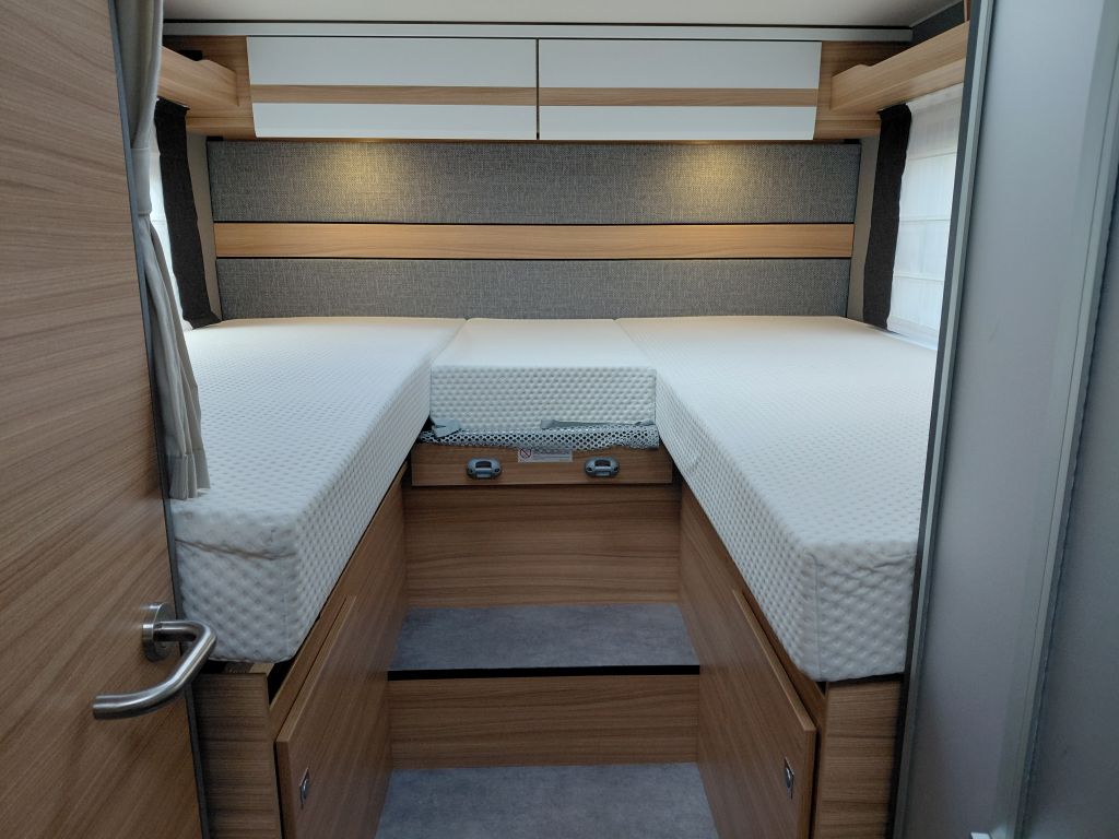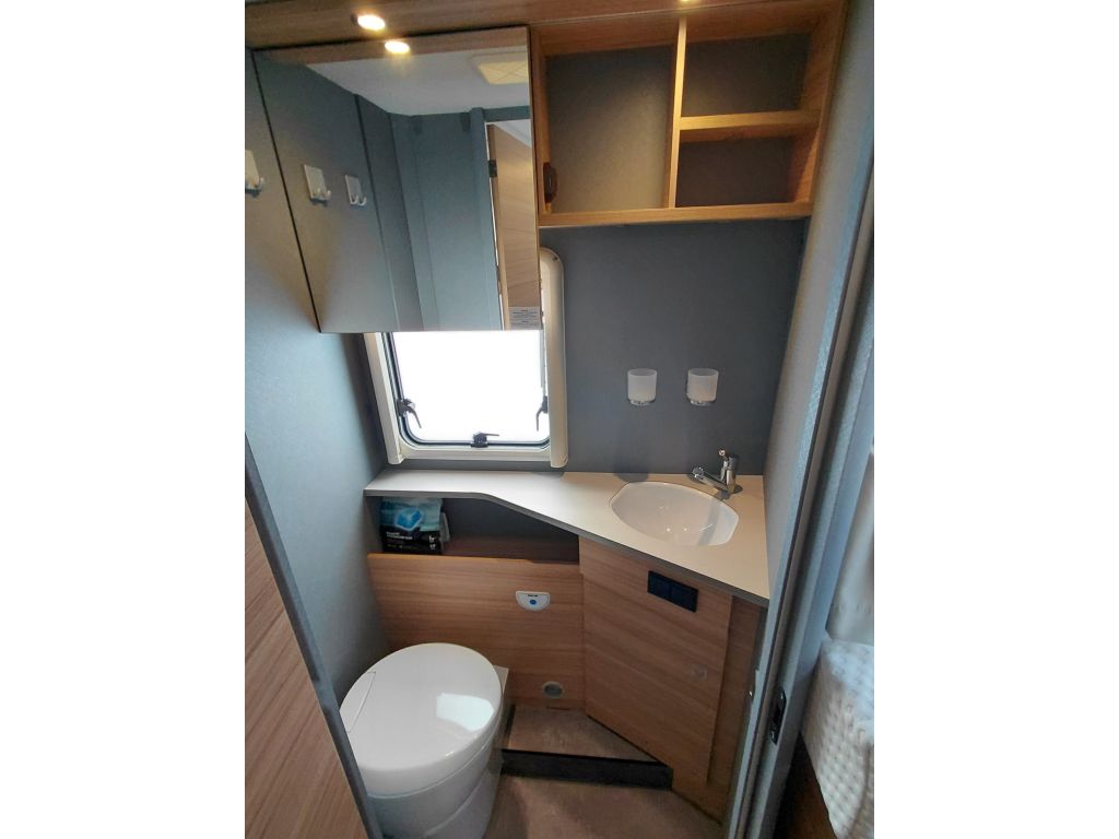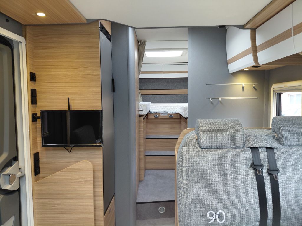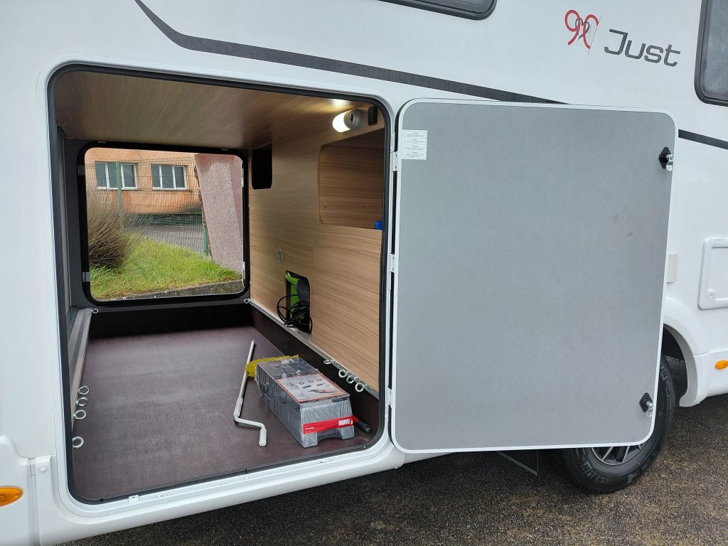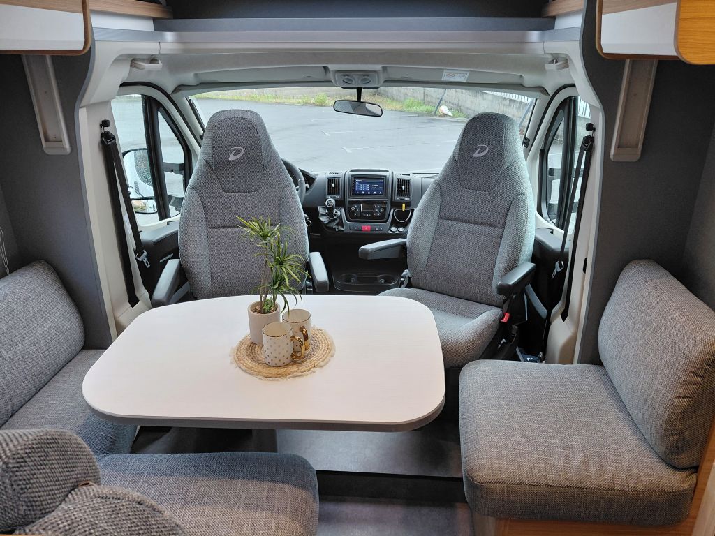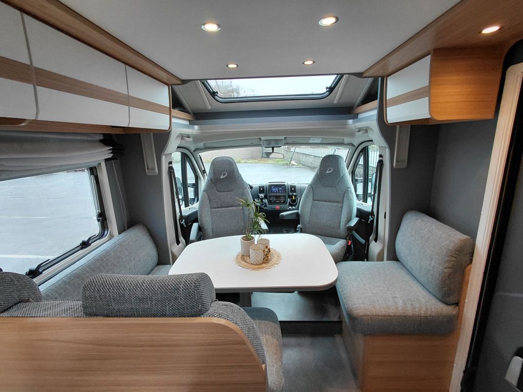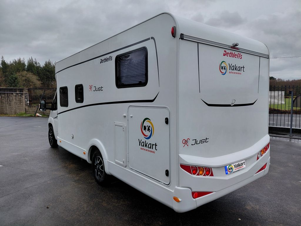 La Dethleffs Just 7052 EB disponible en Yakart Lugo lleva instalado toldo, placa solar, TV, cámara de marcha atrás, sistema multimedia con Android Auto y Apple Car.