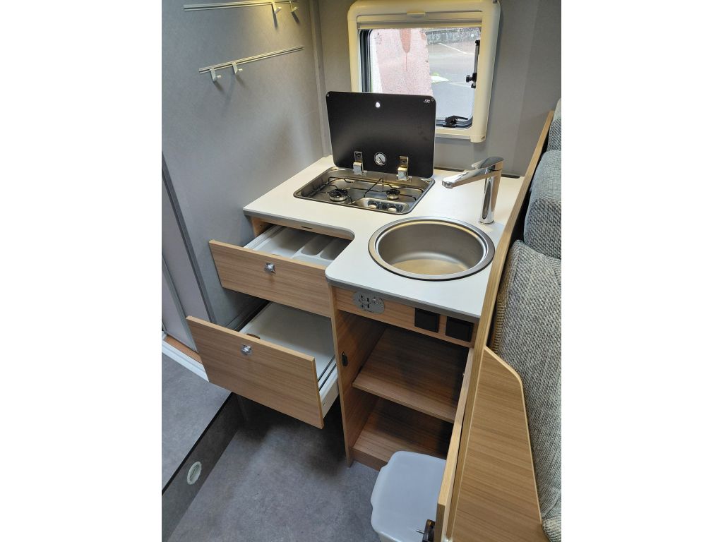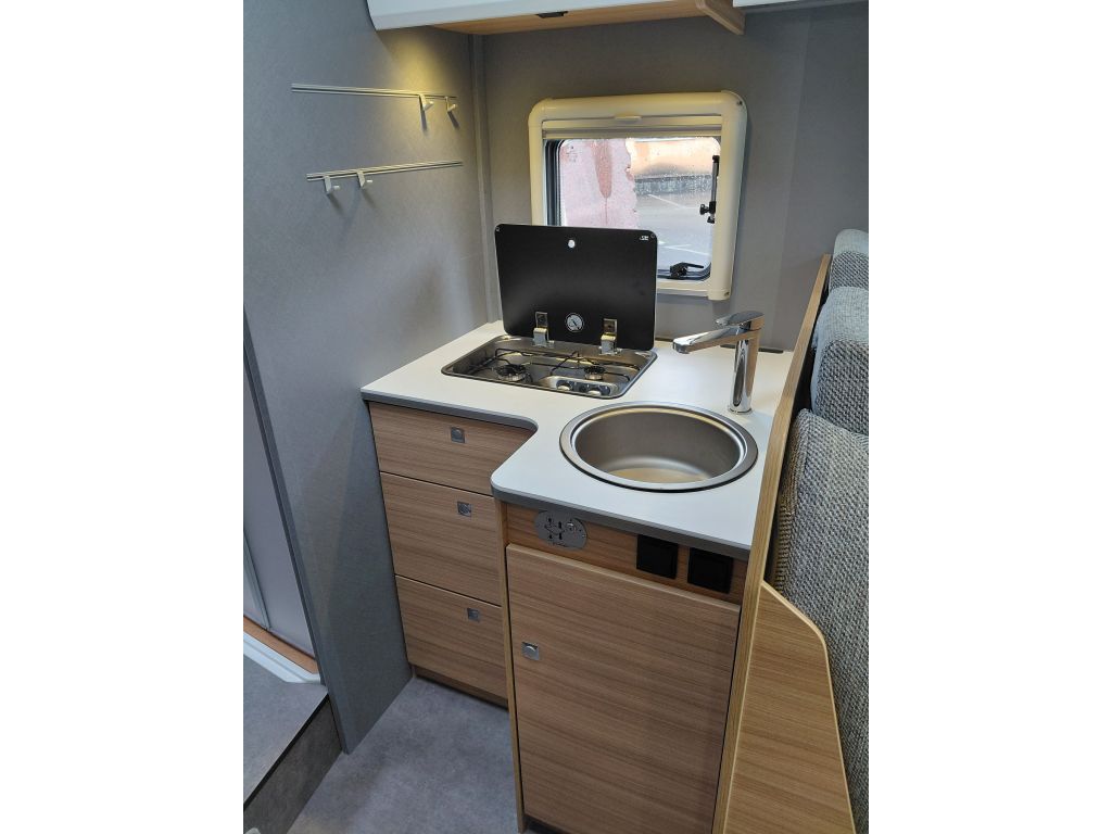 - Cocina totalmente equipada para preparar tus comidas favoritas en ruta. Con frigorífico, fogones, espacio de almacenamiento y fregadero.