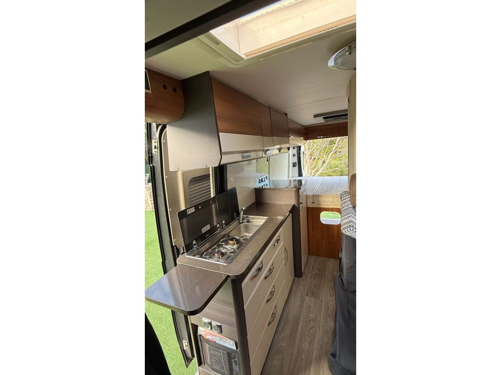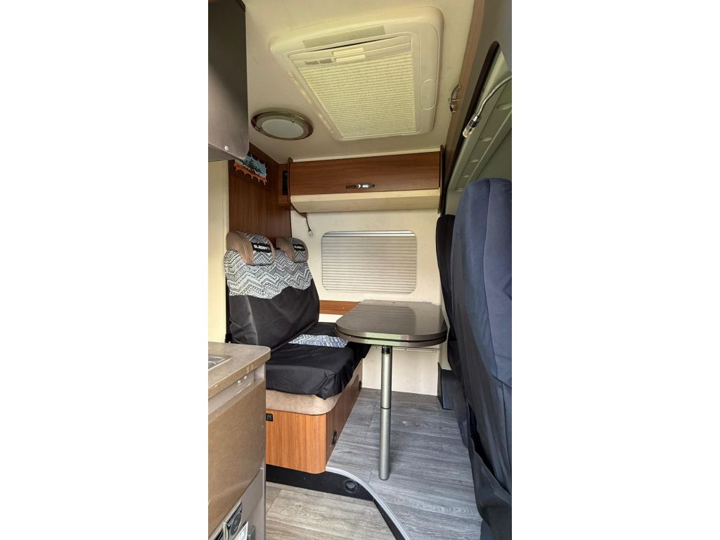 En Yakart autocaravanas tenemos disponible esta furgoneta camper Hobby K65 FT. Dispone de dos plazas para dormir, y cuatro para viajar y comer, cama transversal y maletero bajo cama. Está equipada con los siguiente extras: