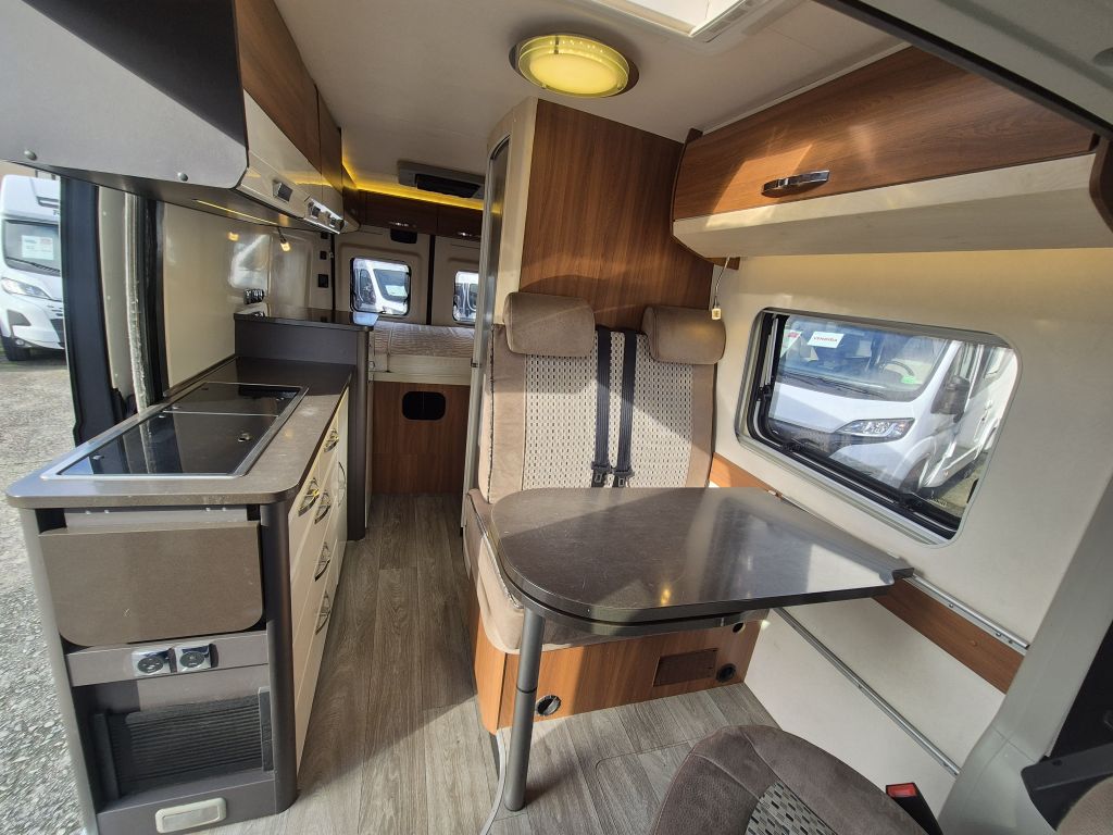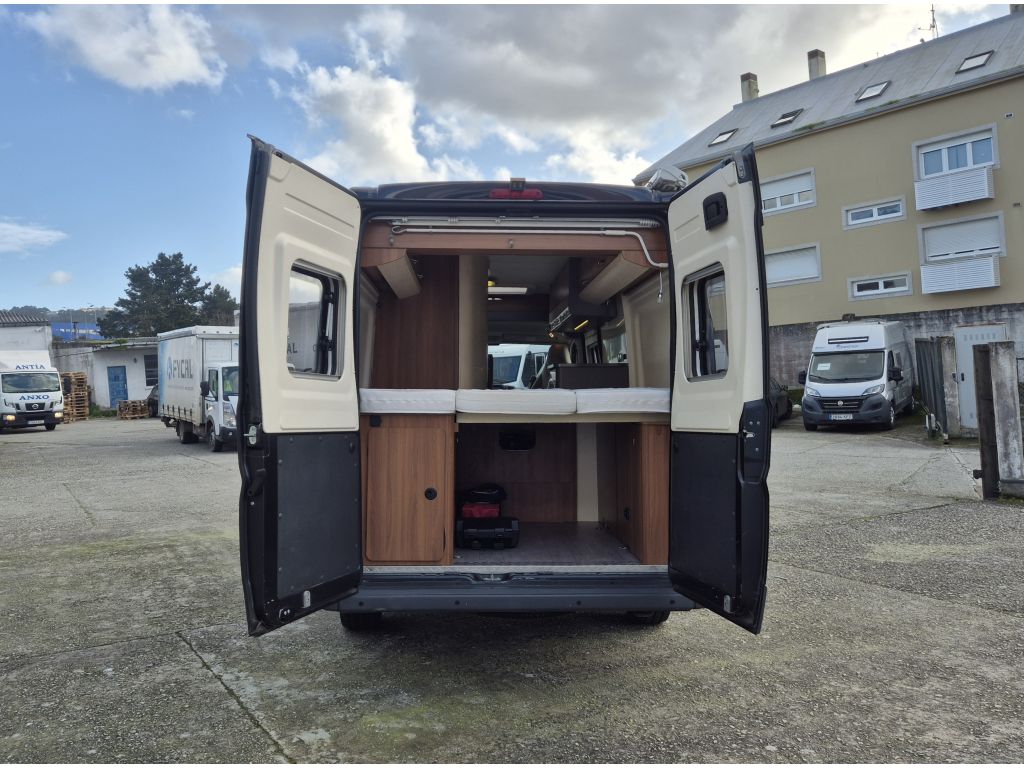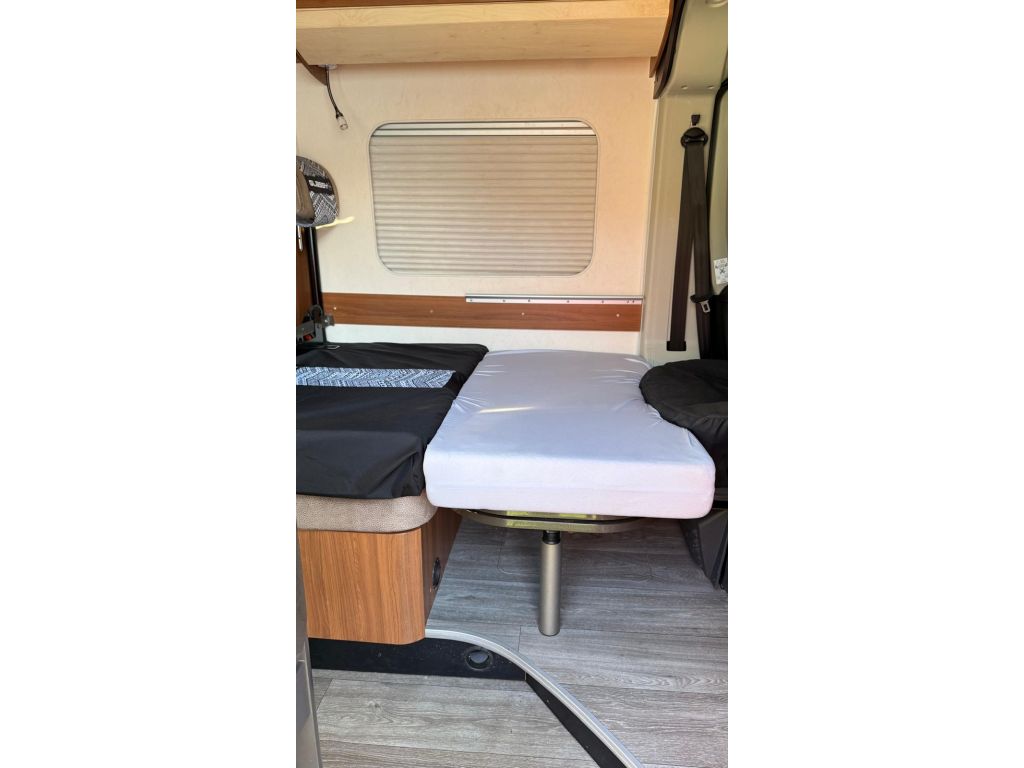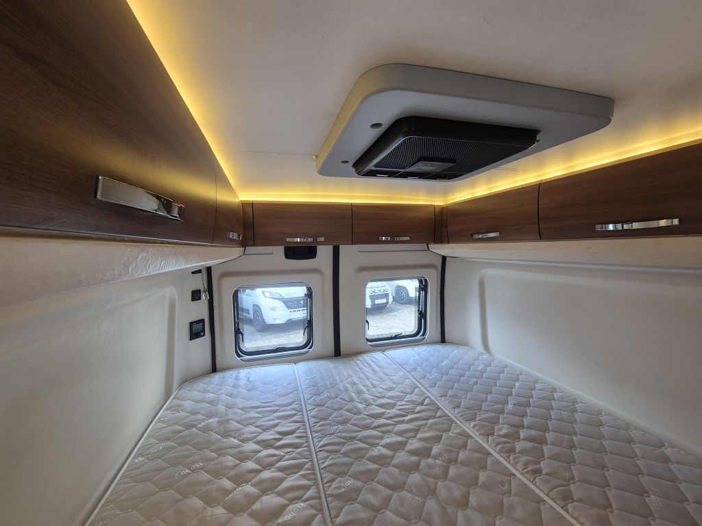 Dispone de tres plazas para dormir, y cuatro para viajar y comer, cama transversal y maletero bajo cama.