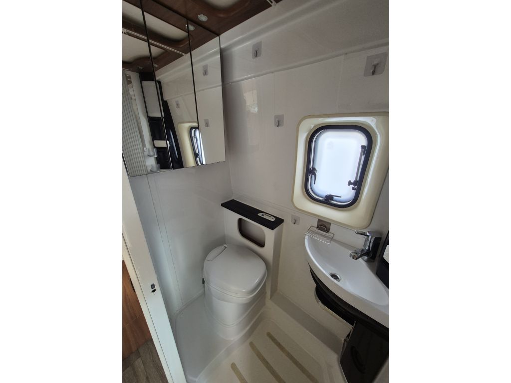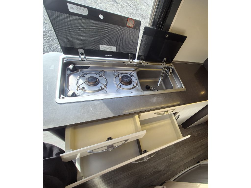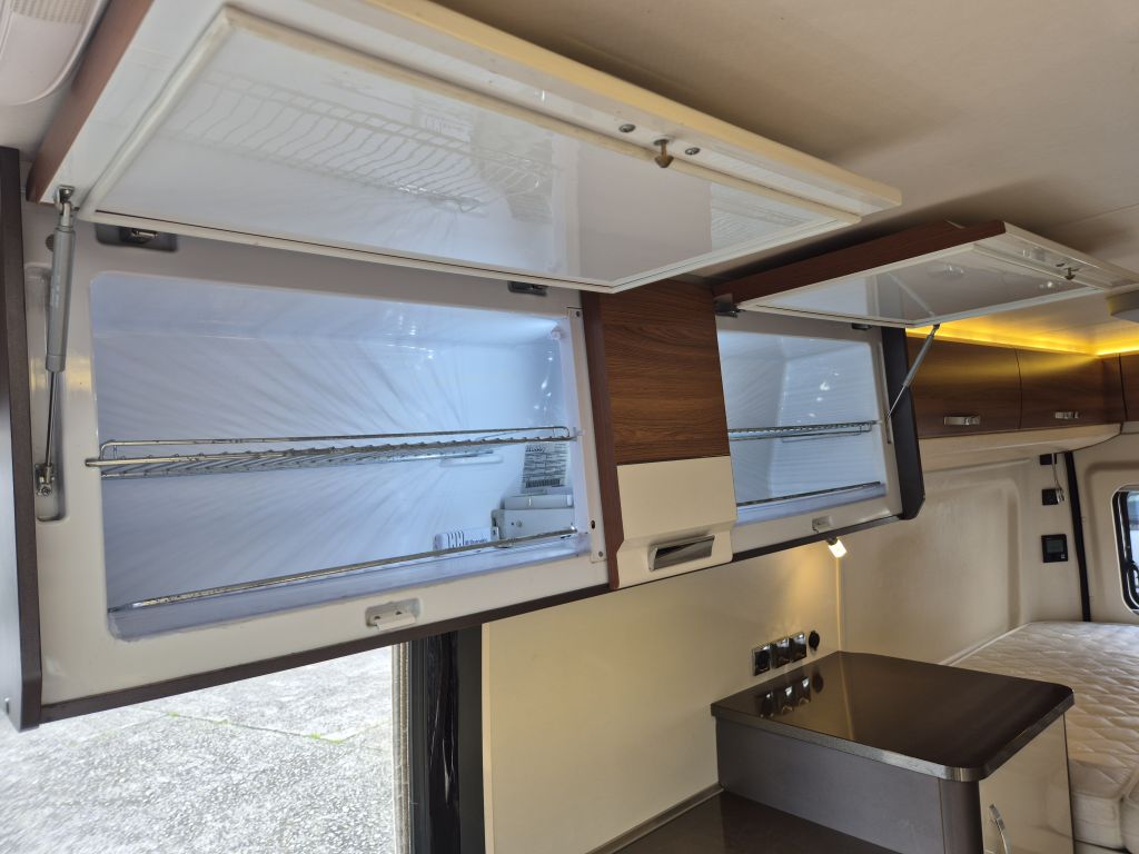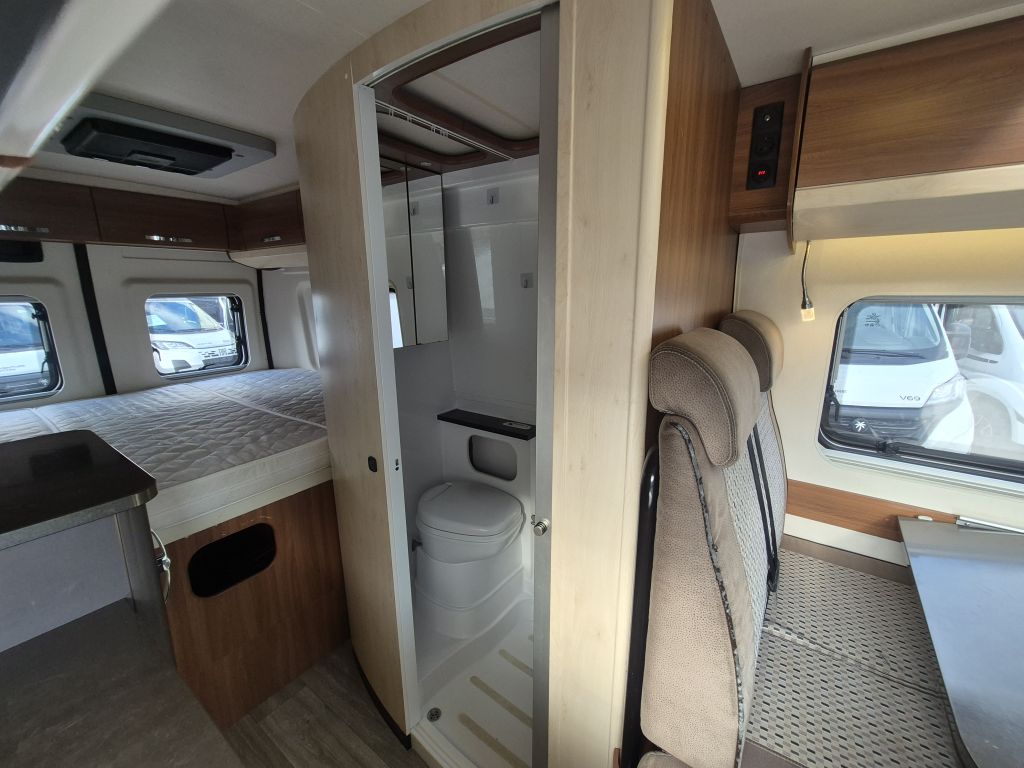Dispone de tres plazas para dormir, y cuatro para viajar y comer, cama transversal y maletero bajo cama.