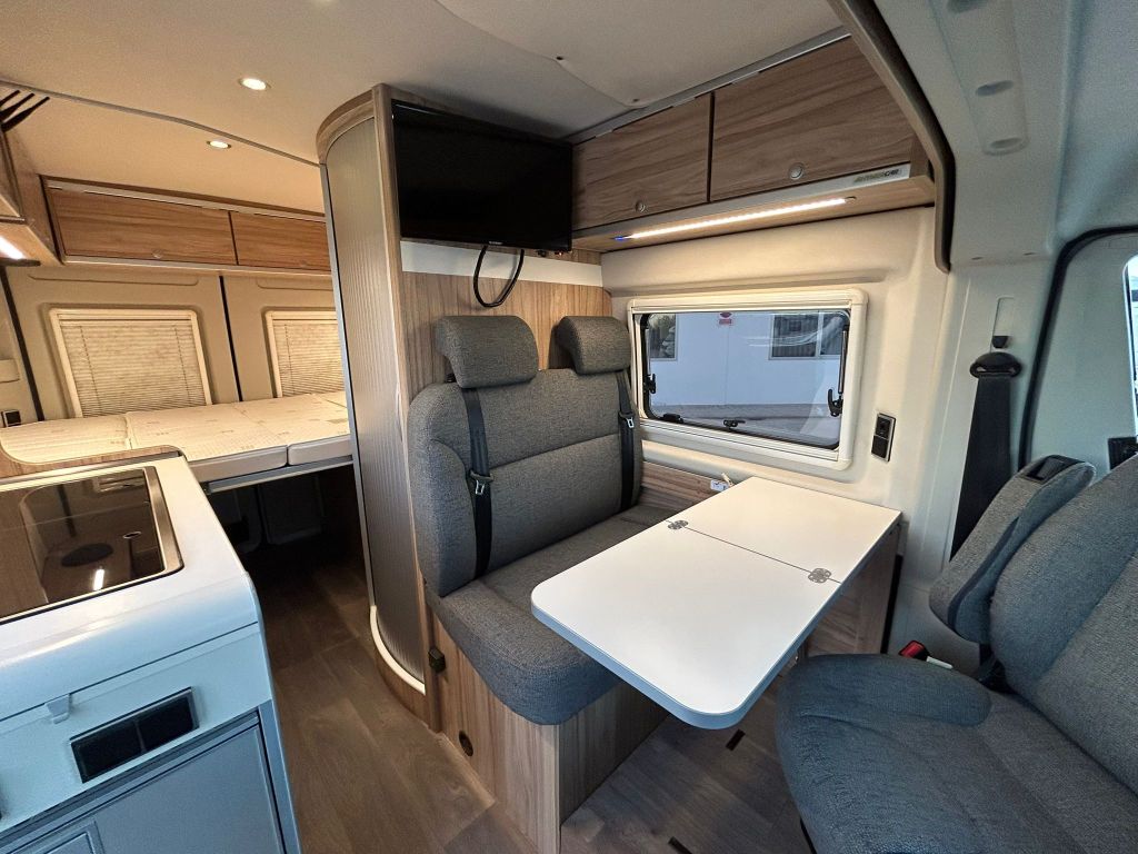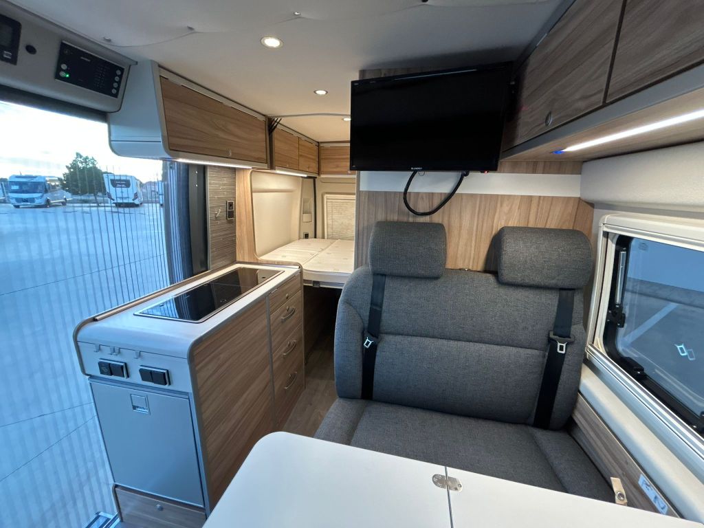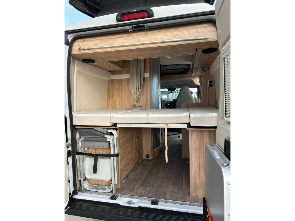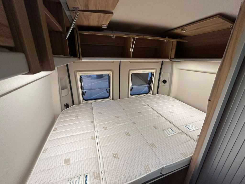 Furgoneta camper Hymer de 4 plazas con cama transversal doble y techo elevable doble