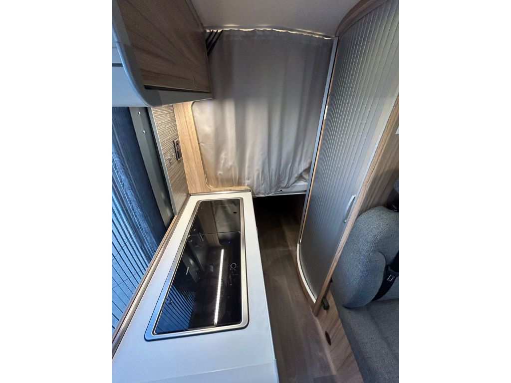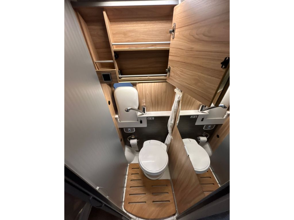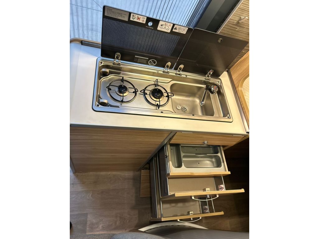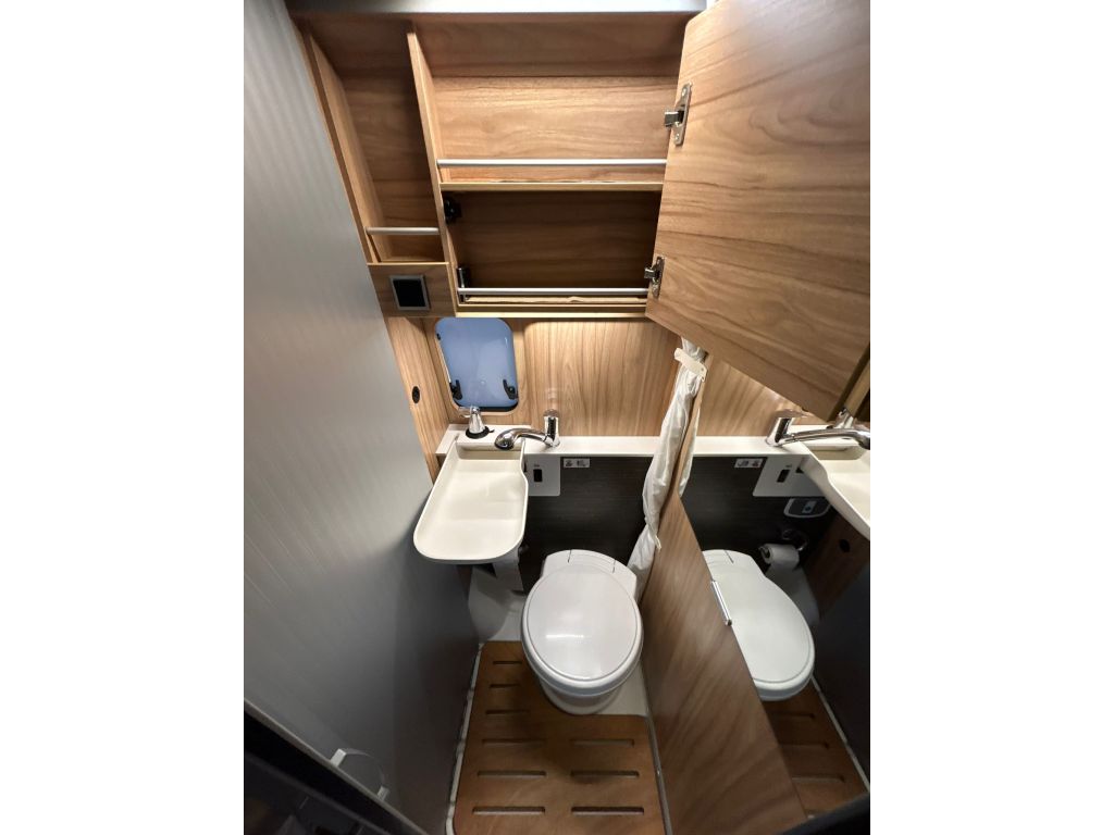 Furgoneta camper Hymer de 4 plazas con cama transversal doble y techo elevable doble