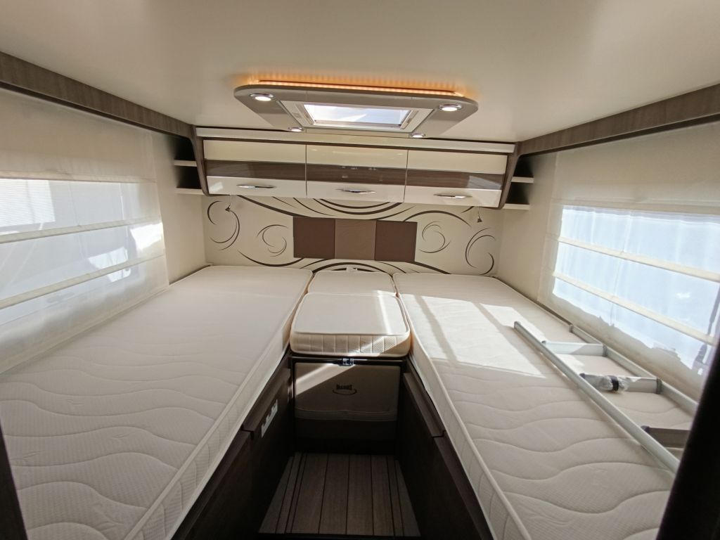 Autocaravana integral McLouis NEVIS 873 con distribución de camas gemelas. Está equipada con todo lo necesario para que no eches en falta nada en tu viaje.