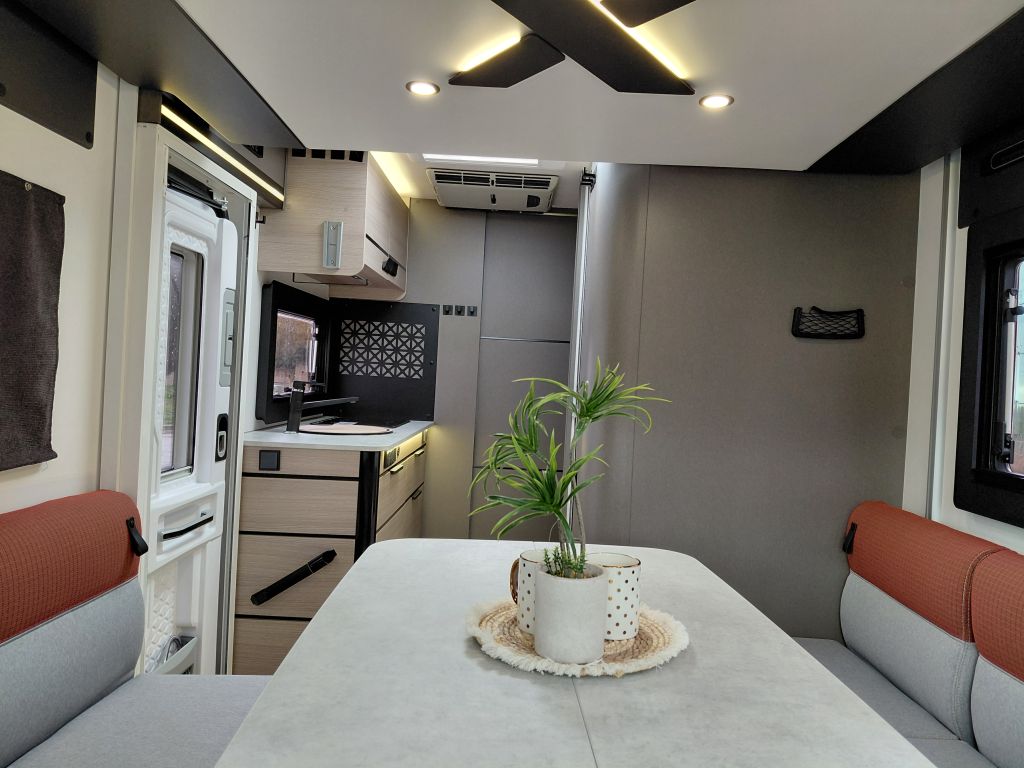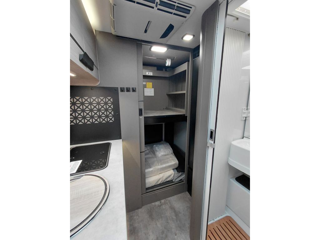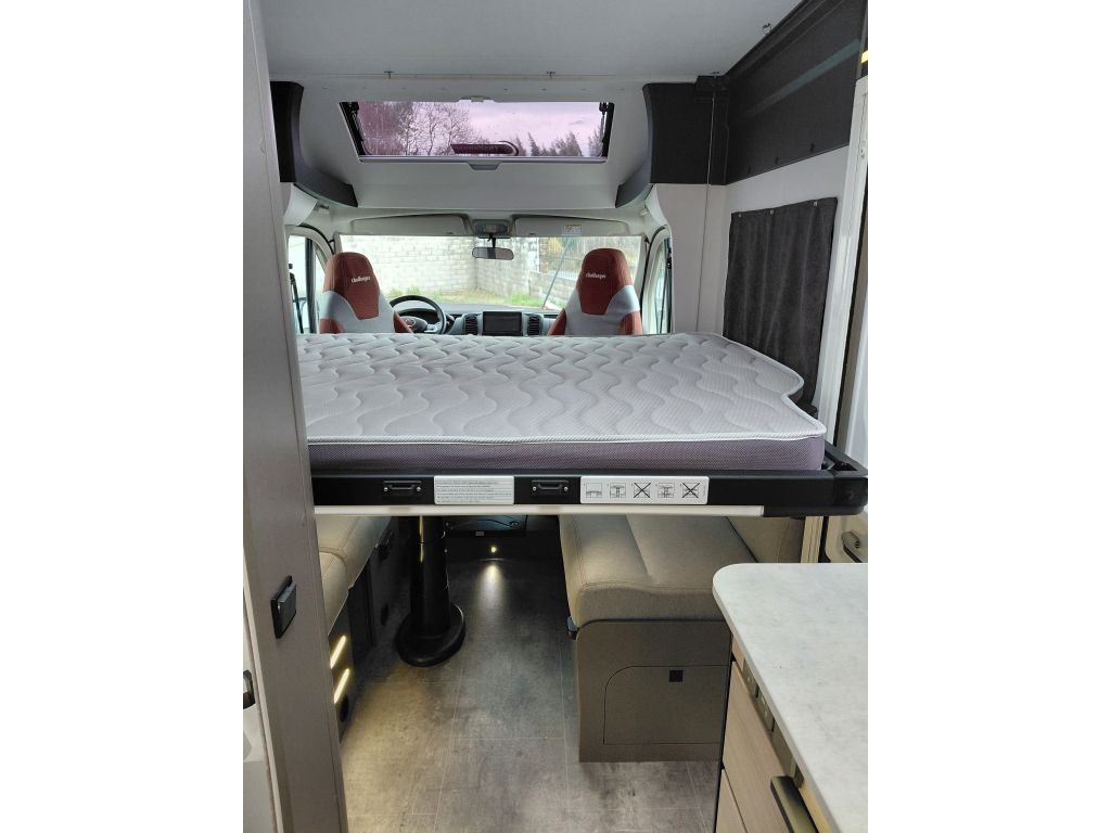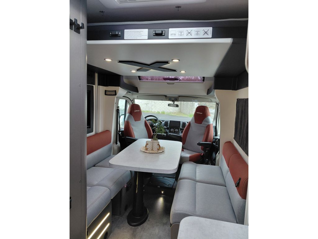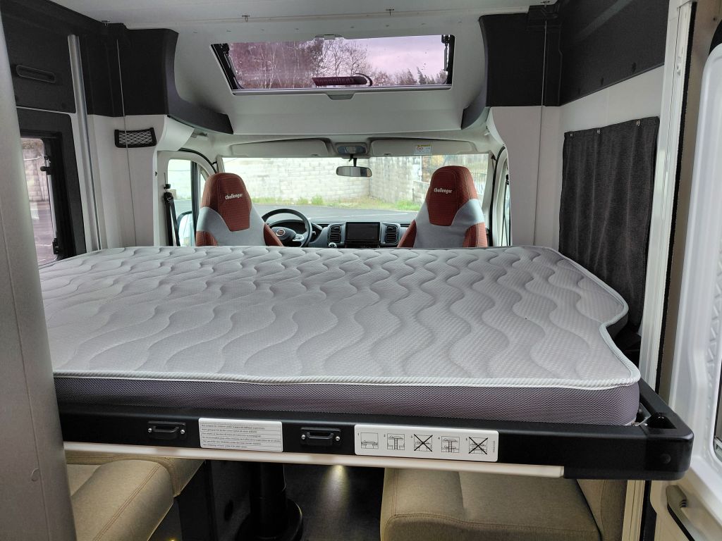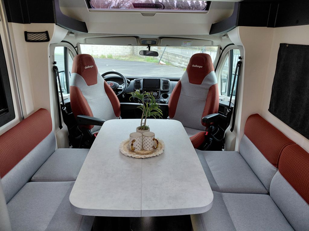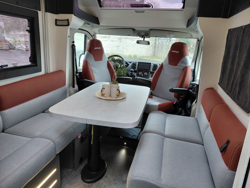 Autocaravana perfilada Challenger X250, el vehículo perfecto para viajes en pareja y pequeñas familias que buscan un interior amplio y acogedor. Una de las características más destacadas es el gran armario trasero y la conexión directa con el garaje. Lo que te permitirá acceder fácilmente a tus objetos personales.