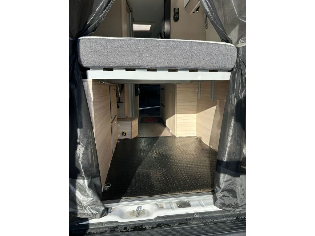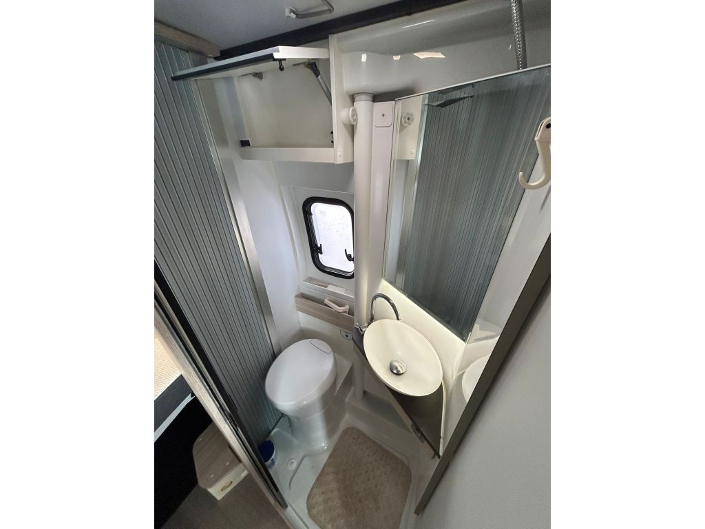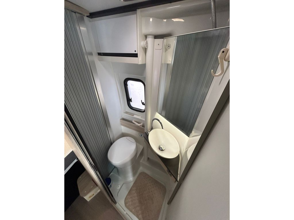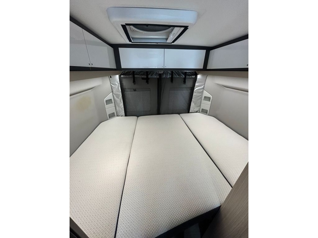 Furgoneta camper ADRIA de 599 con cama de matrimonio y aseo convertible.