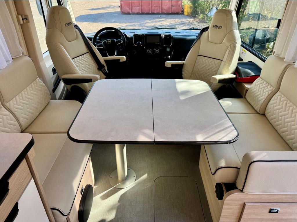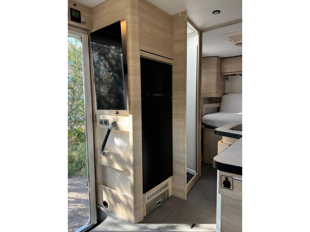 Disfruta de una gran luminosidad natural gracias a sus amplios ventanales y tapicerías claras, creando un ambiente espacioso y acogedor. La distribución, con cama isla regulable en altura (hasta 30 cm), mesa tipo libro y salón enfrentado, ofrece el equilibrio perfecto entre comodidad y estilo.
