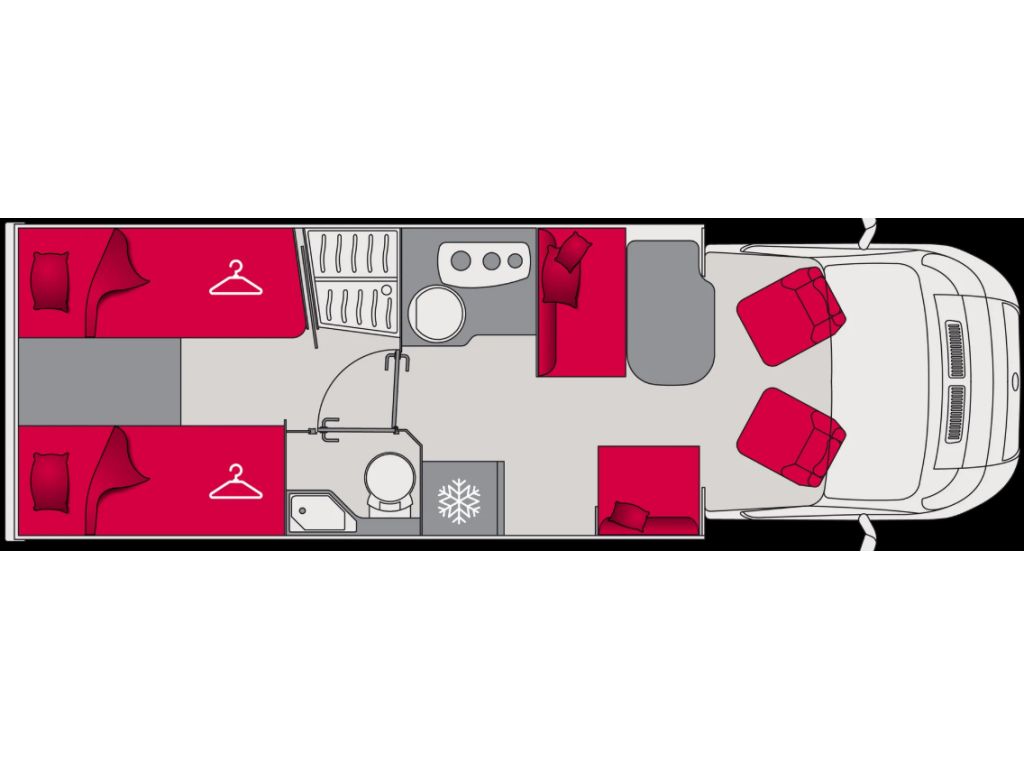 Autocaravana perfilada PILOTE de 4 plazas con camas gemelas y el aseo separado de la ducha