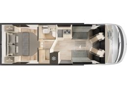 Autocaravana integral Mobilvetta de 4 plazas con salón "Face to face" y cama isla
