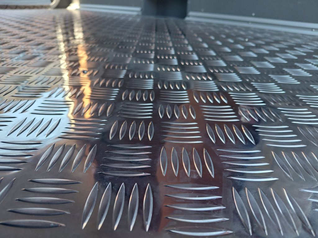 - Suelo de chapa estriada de aluminio en el garaje de bicicletas/motocicleta.
