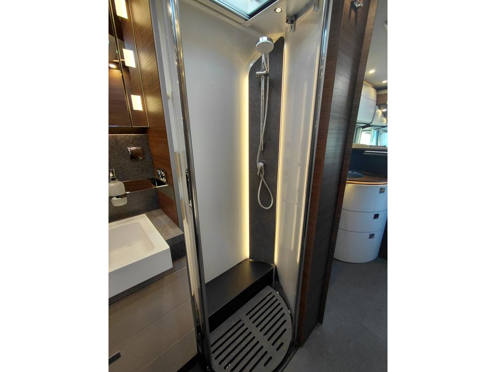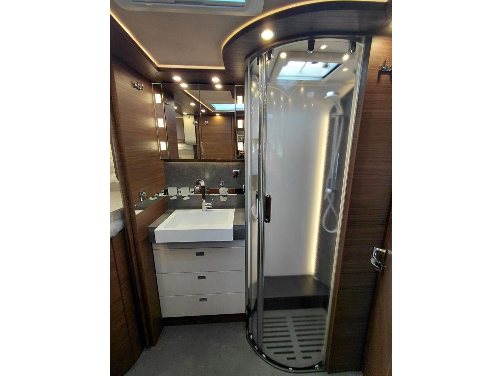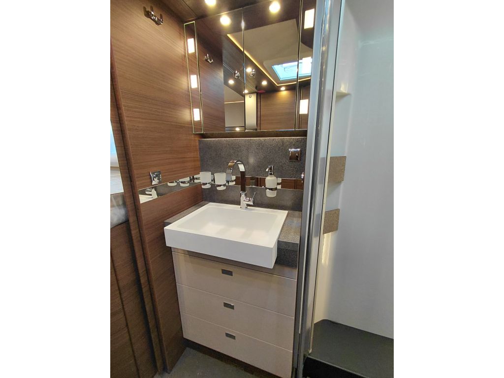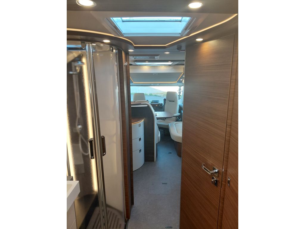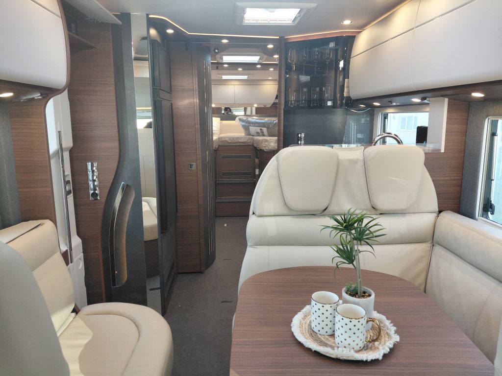 La autocaravana intergal Chic C-line 5.9 XL LE cuenta con eje doble AL-KO. Incluye un amplio salón XL con sofá lateral largo y continúa con un aseo XL con aseo separado, amplia ducha redonda y vestuario completamente separable.