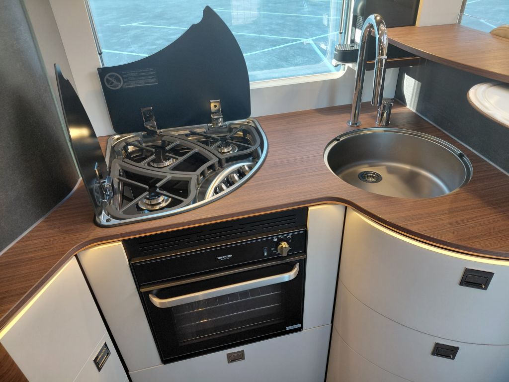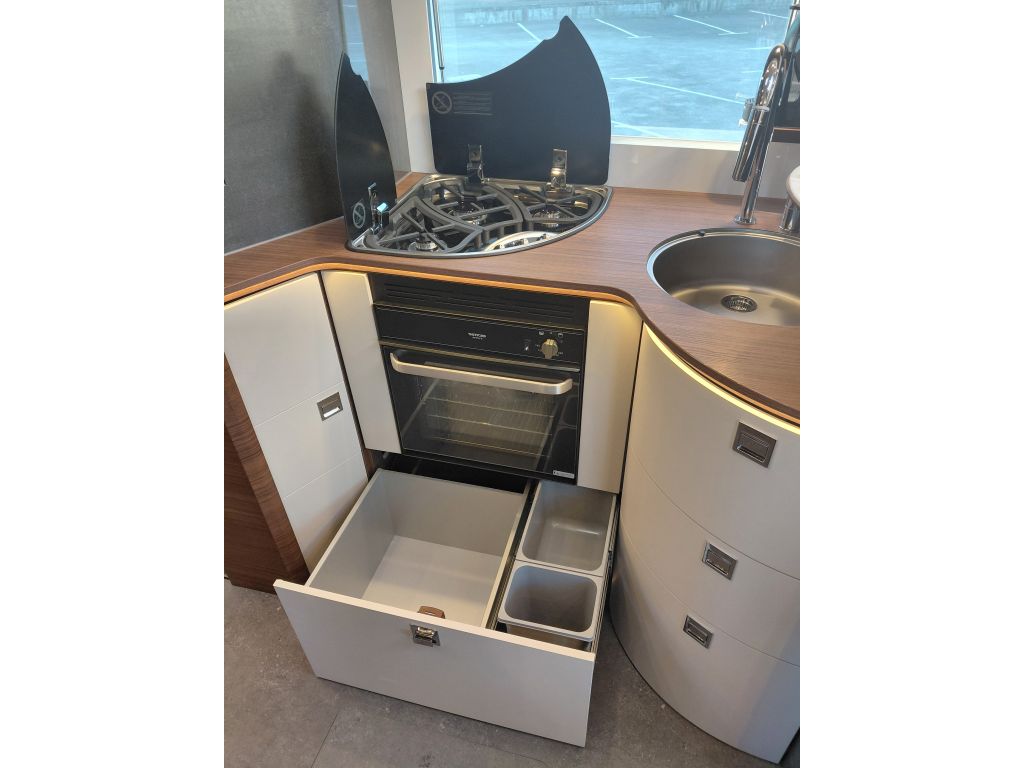 - Cómodo acceso desde el interior a través de la cubierta del banco del asiento del salón en forma de L, el banco del asiento lateral abatible (según el modelo) y la gran trampilla del suelo del salón