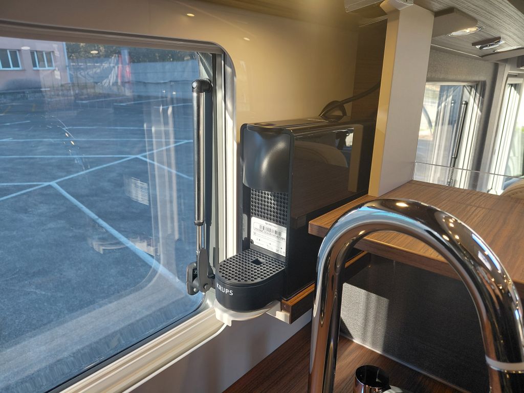 Paquete de cocina y cafetera con un transformador de tensión de 12V a 230V, 1800 vatios, conmutador prioritario de red y una cafetera de cápsulas de café con juego de conexiones y sistema de extracción.
