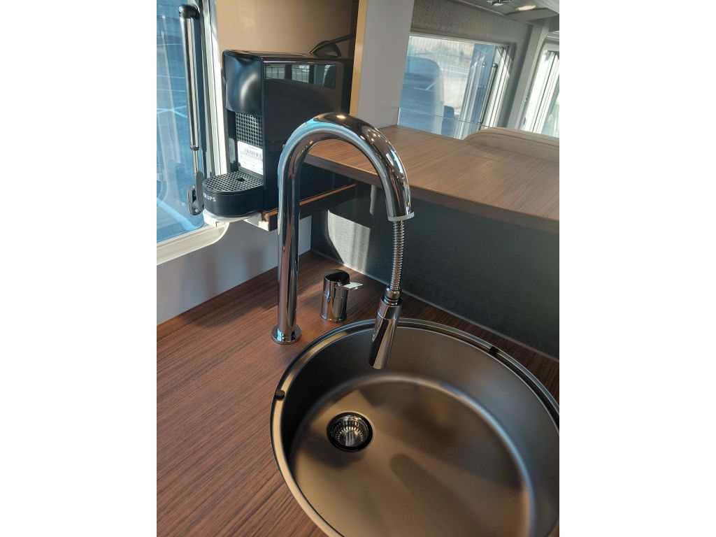 Los diseños XL ganan puntos con el bastidor bajo AL-KO especial Carthago con el eje trasero de doble eje y 198 cm de ancho de batalla, un peso bruto admisible de hasta 5,5 t y una carga máxima sobre el eje trasero de hasta 3.600 kg. A esto hay que añadir la calefacción central de agua caliente Alde de serie y el doble acristalamiento aislante de las ventanillas laterales y de la ventanilla de la puerta de la cabina del conductor.