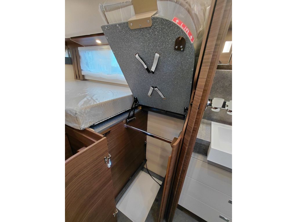 - Armarios debajo de las camas individuales longitudinales, fácilmente accesibles desde delante y desde arriba mediante la función de elevación - se bajan al doble suelo para una altura interior adicional.