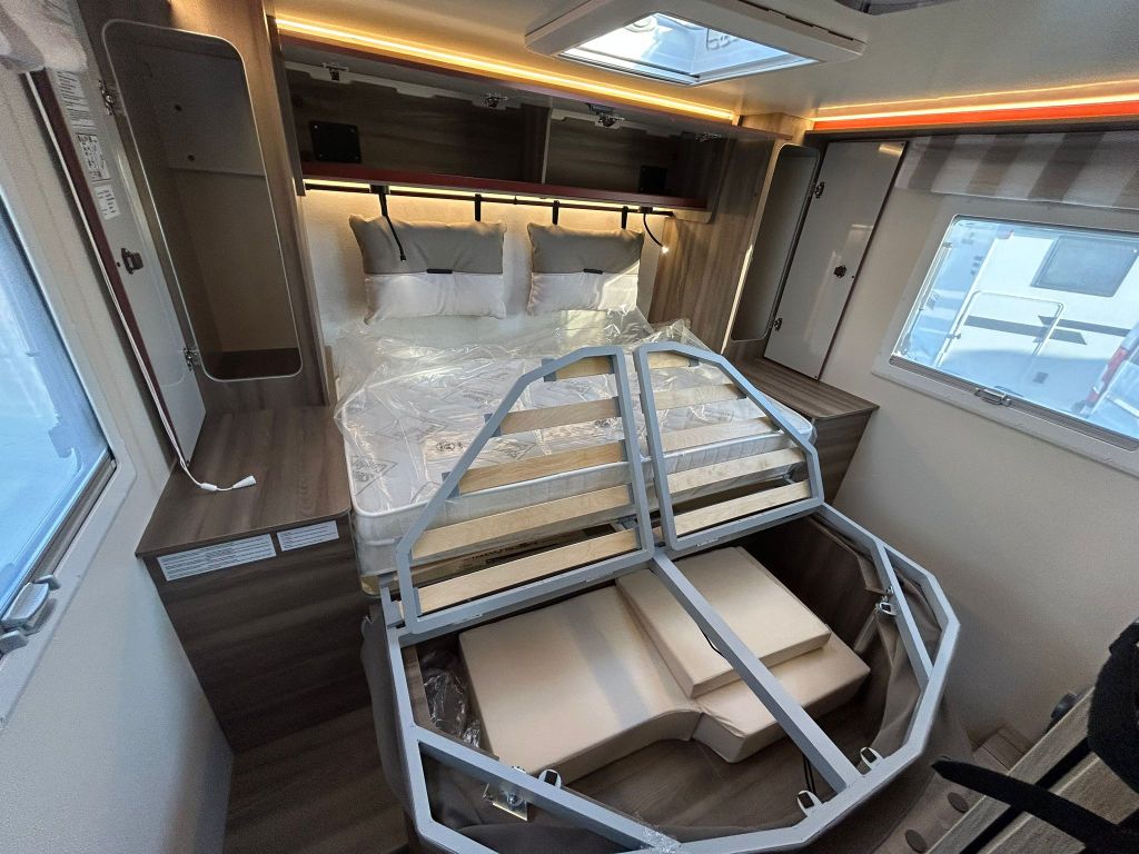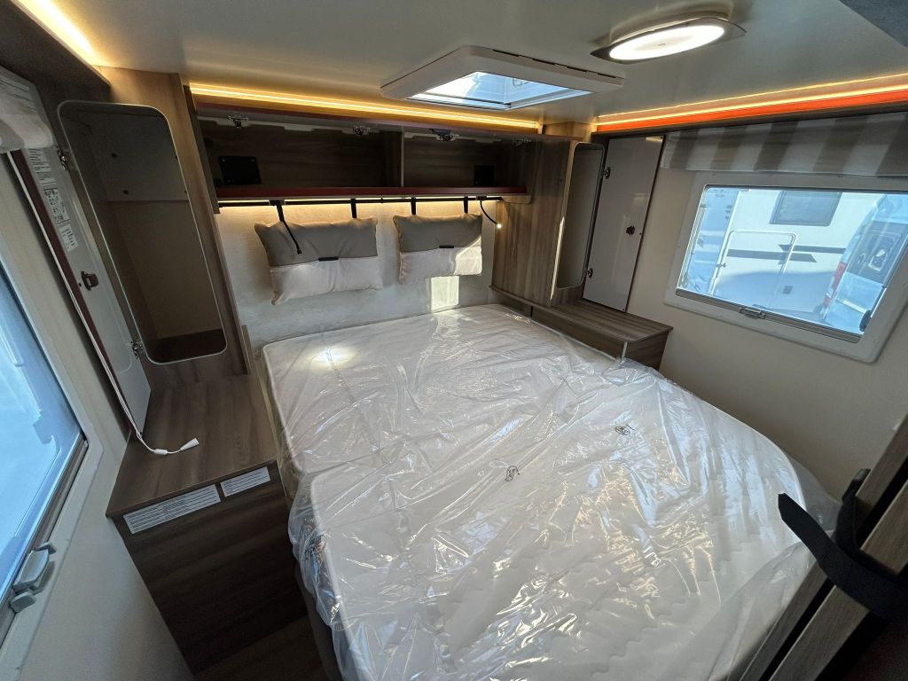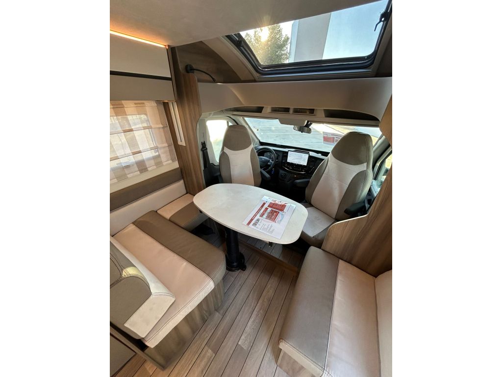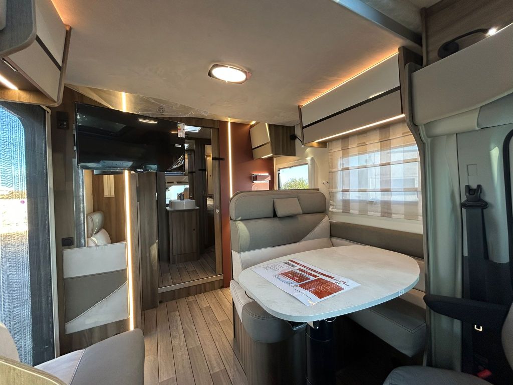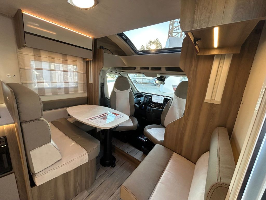 Autocaravana perfilada Roller Team de 5 plazas con cama isla y 3 ambientes , gran capacidad de almacenamiento.