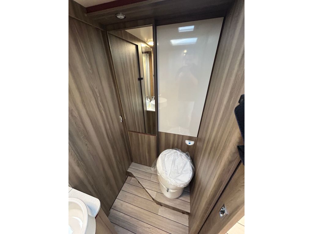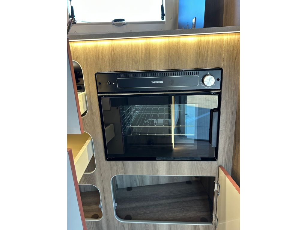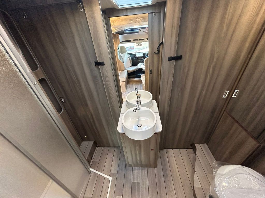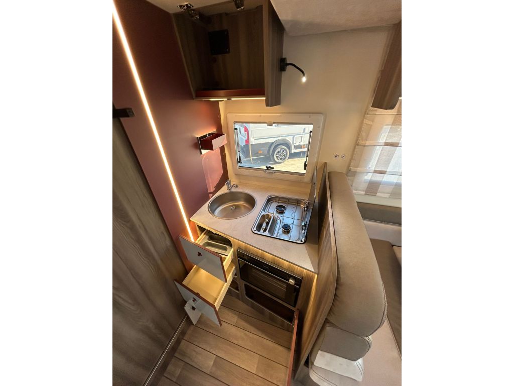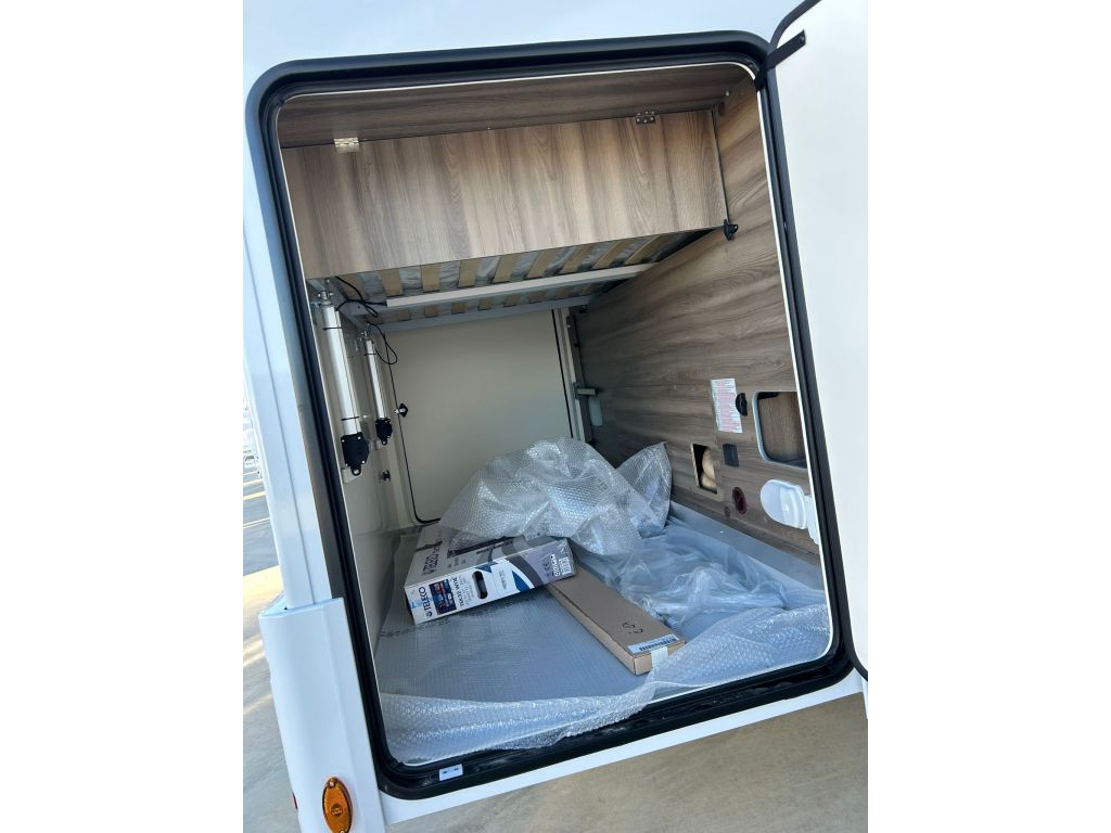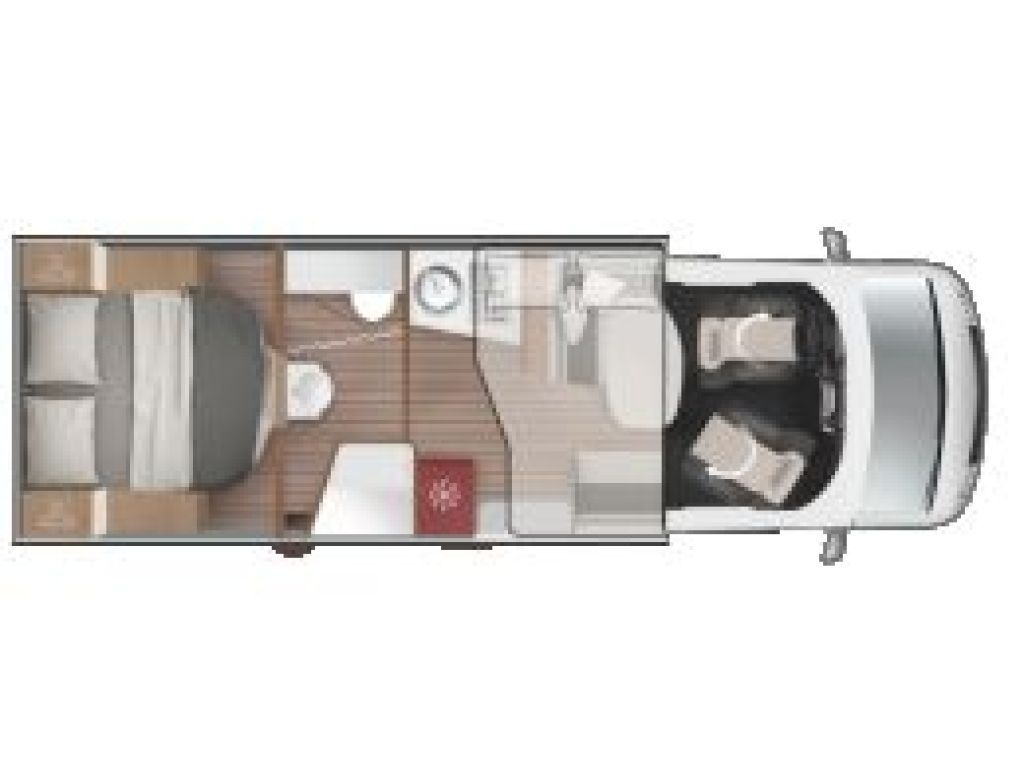 Autocaravana perfilada Roller Team de 5 plazas con cama isla y 3 ambientes , gran capacidad de almacenamiento.