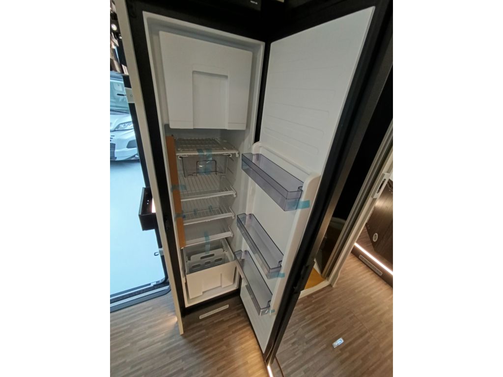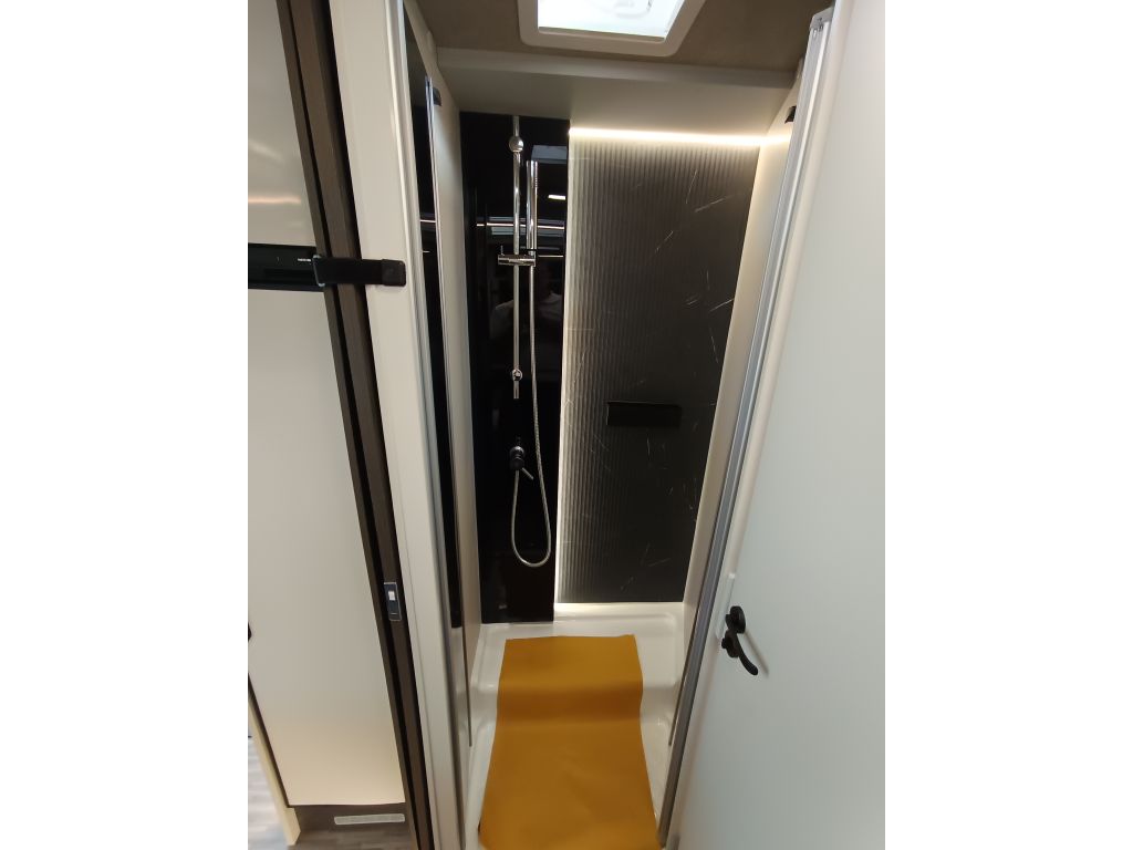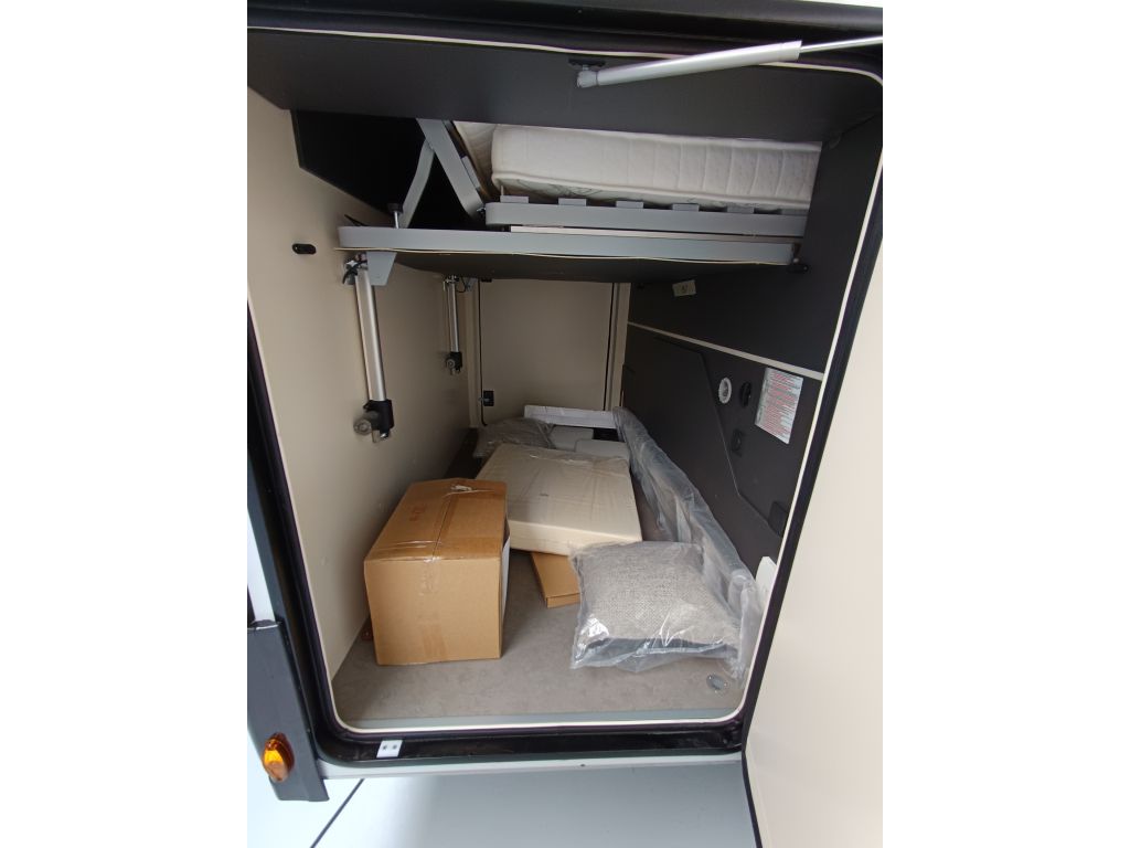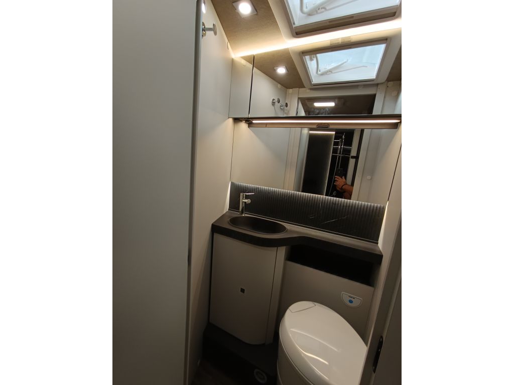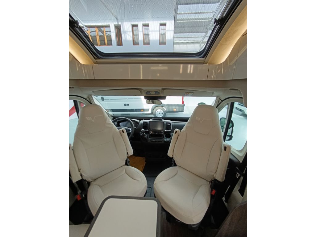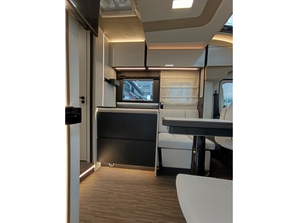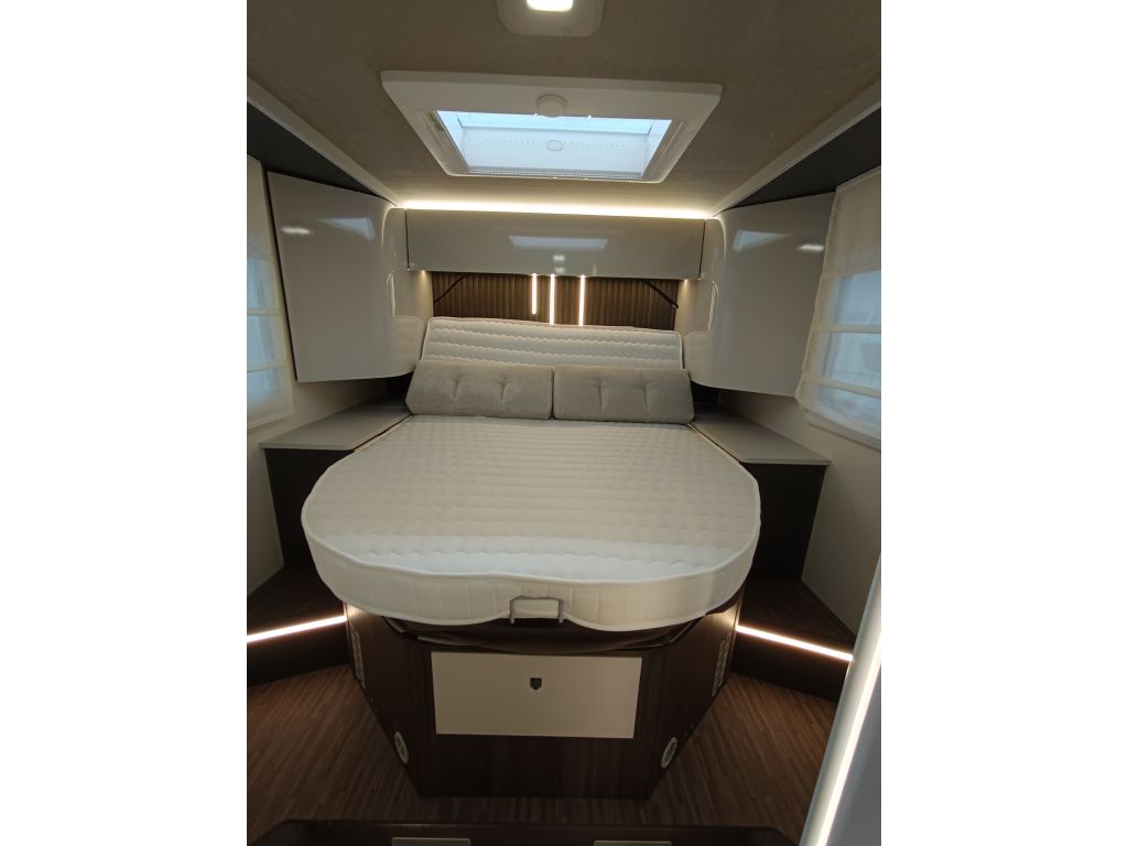 La distribución interior ofrece un ambiente acogedor y funcional, con cama central tipo isla, salón convertible y baño con ducha independiente. Los materiales, la iluminación LED y el mobiliario italiano aportan una sensación de exclusividad y confort que distingue a Mobilvetta en su categoría.
