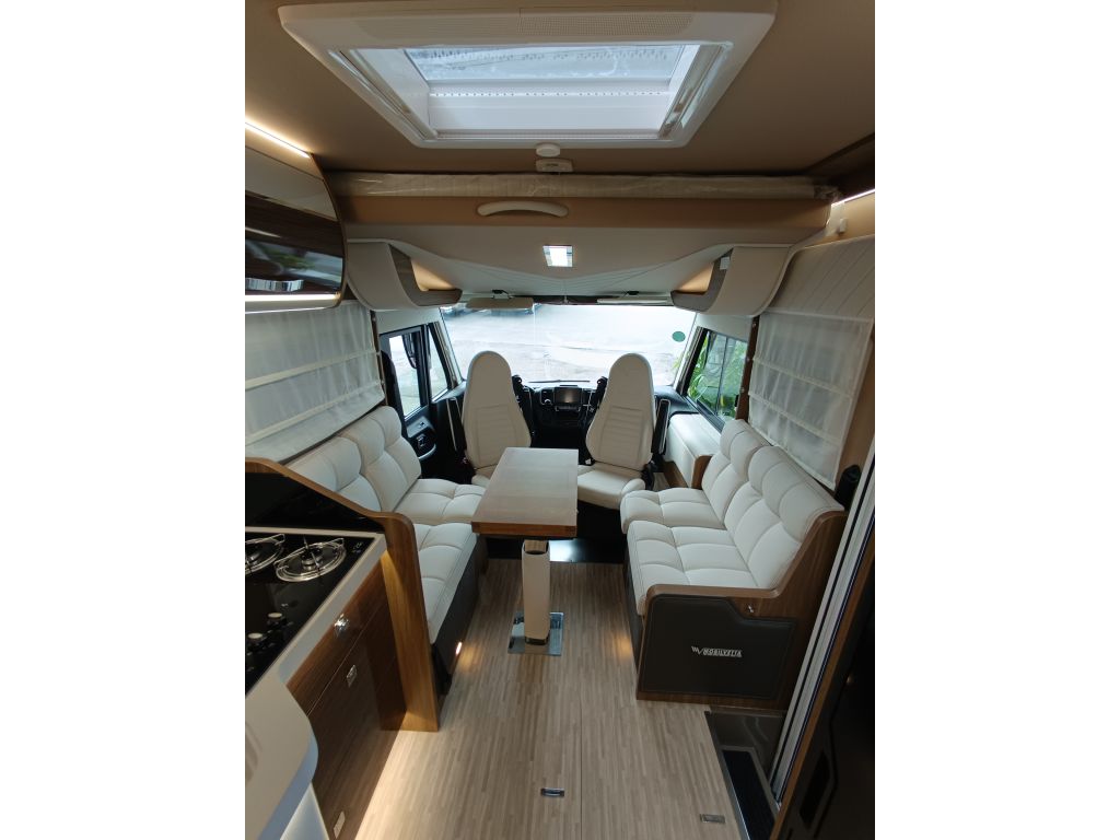 La Mobilvetta K-Yacht Tekno Line 86 es la compañera perfecta para quienes buscan prestaciones de lujo, diseño italiano y libertad total en cada viaje. Una autocaravana creada para disfrutar la carretera con la máxima comodidad y distinción.