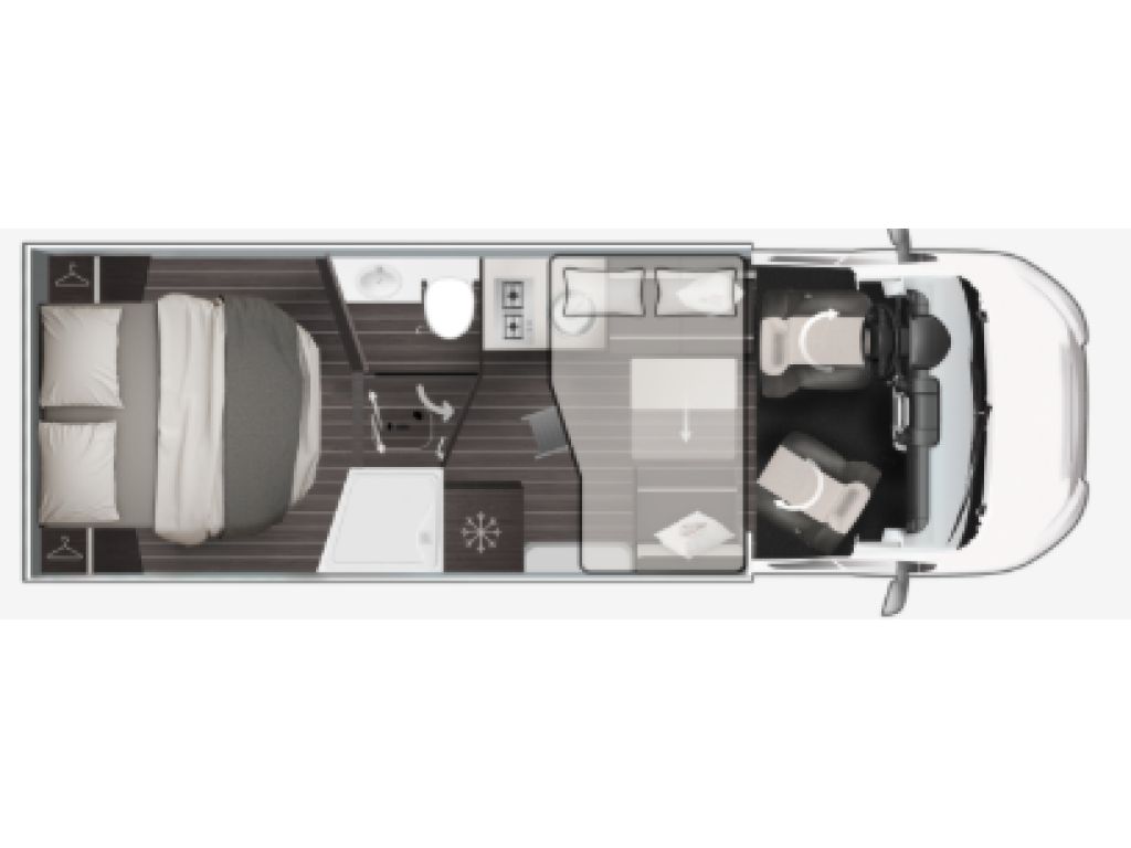 Autocaravana perfilada Roller Team de 4 plazas con cama isla y salon "face to face" en la gama "Zefiro"