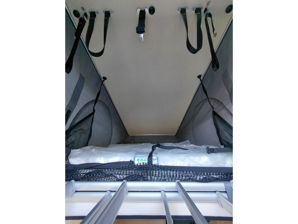El modelo D43 Up es un camper con techo elevable que ofrece 4 plazas para dormir sin renunciar al confort y espacio interior. Gracias a su cama en el techo elevable, viajar en familia será mucho más fácil y cómodo en una furgoneta que no llega a los 5 metros y medio de largo.