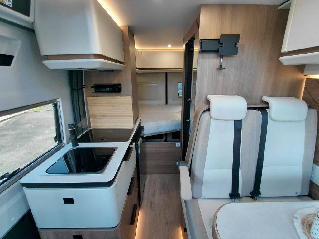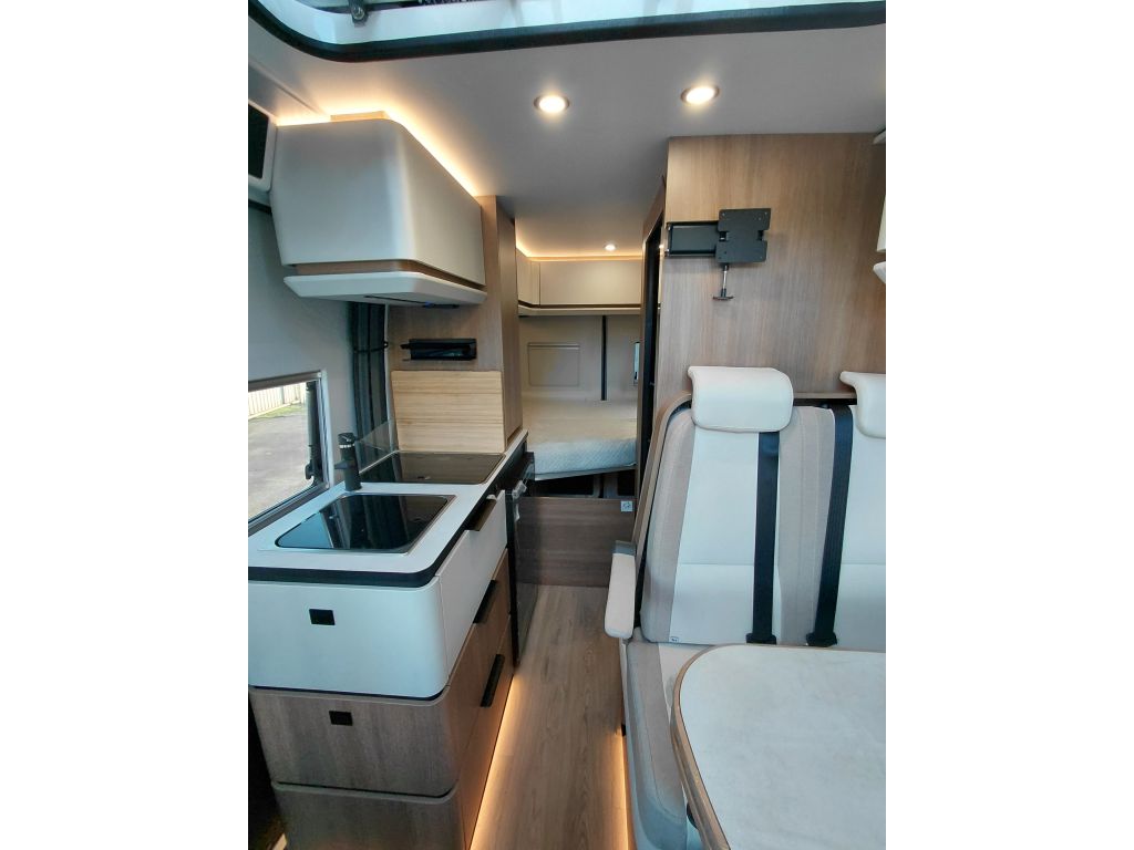 Con motivo del 20 aniversario de Dreamer, la gama Select sufre una evolución e incorpora un nuevo aspecto con acabados refinados y un equipamiento mejorado. Esta nueva generación ofrece espacios optimizados, ambientes acogedores y soluciones de almacenamiento inteligentes. Algunas de sus novedades que marcan la diferencia son su mueble de la cocina que combina funcionalidad y estética con almacenamiento para accesorios y una ampliación de la encimera que proporcionará mayor confort a la hora de preparar la comida. Mientras que en la zona trasera de la furgoneta una nueva cama peine con colchones de gran calidad que aportan un lugar de descanso y sueño reparador además de la posibilidad de modular el volumen de almacenamiento en el garaje.