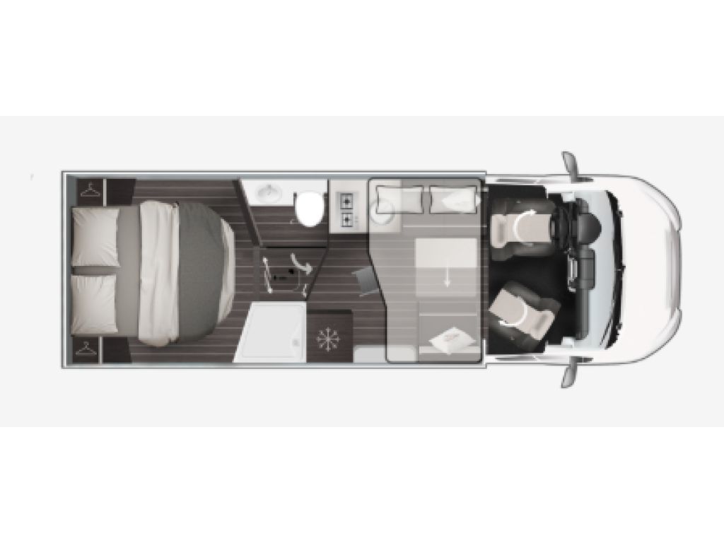 Autocaravana perfilada Roller Team de cama isla , salón " face to face " con aseo y ducha separados
