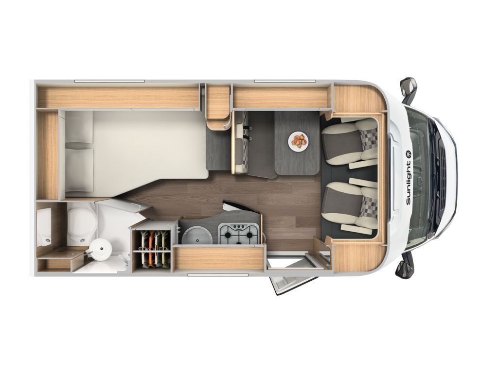 Autocaravana perfilada Sunlight de cama francesa y 5 plazas para dormir en 6 metros