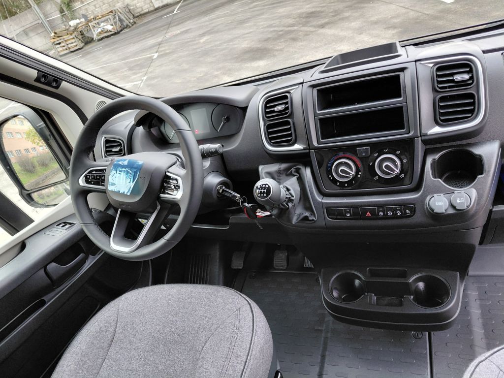 El puesto de conducción incluye volante multifunción, control de crucero (Tempomat), aire acondicionado manual, función Start & Stop con booster, retrovisores eléctricos y calefactados y antena DAB integrada en el retrovisor. Además, ofrece tomas USB y portabebidas en la consola central, para mantener todo al alcance durante el viaje.