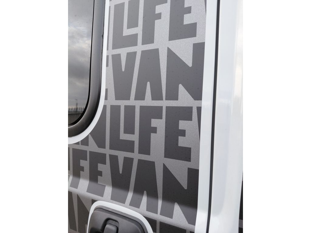 El exterior de este camper sigue un diseño único acorde a su interior, ya que un modelo con tres estancias merece un look especial. Su interior destaca por su gran salón que proporciona un espacio acogedor y cómodo en la parte trasera de la furgoneta camper.