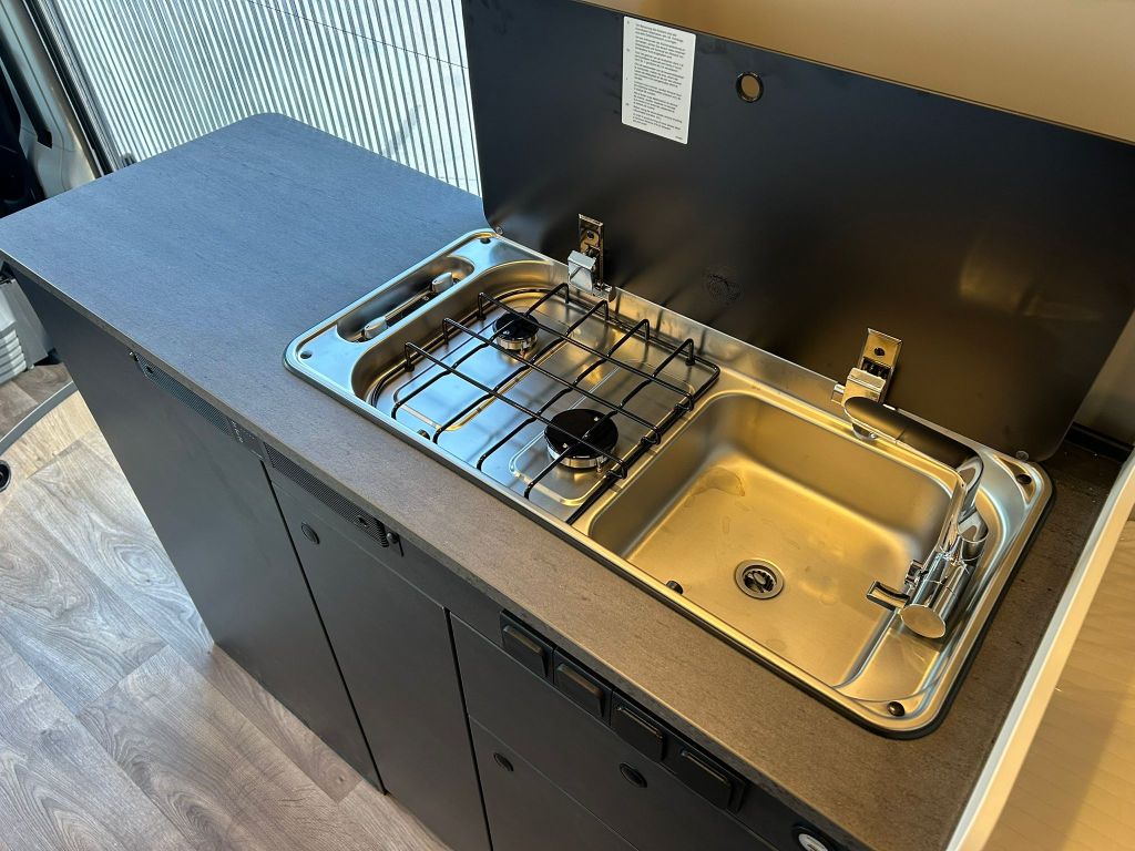 Furgoneta Camper Sunlight de 4 plazas para viajar y hasta 5 plazas para dormir, con un amplio techo elevable con cama de matrimonio y el siguiente equipamiento adicional: