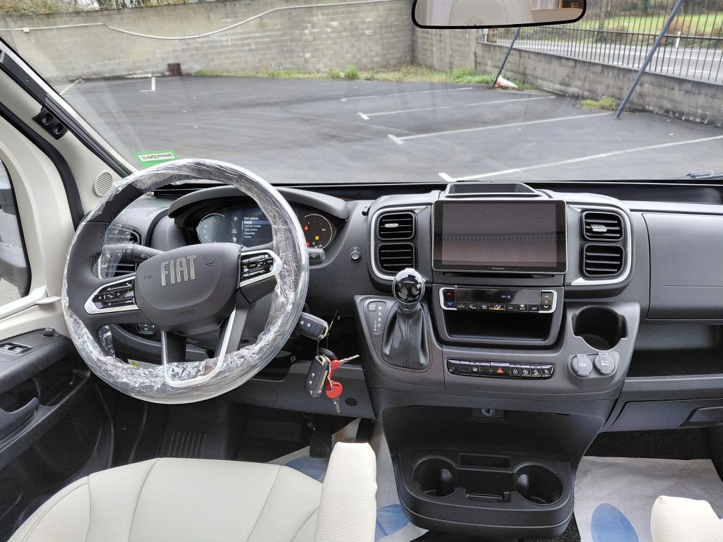 El chasis de esta autocaravana Rapido disponible en Lugo es un Fiat 2.2 L de 140 CV con cierre centralizado tanto en la puerta de vivienda como en las de cabina. Tiene función Stop & Start y retrovisores exteriores de doble visión ya que cuenta con una lente gran angular fija.