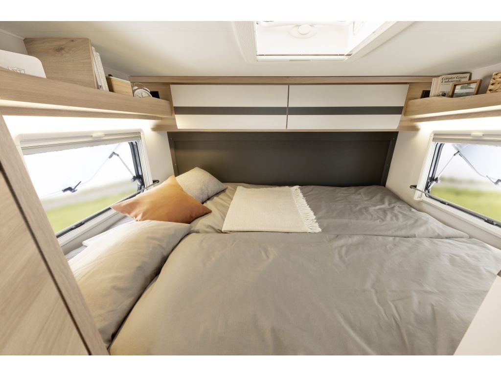 El descanso está garantizado gracias a la cama doble transversal que se encuentra en la parte trasera del vehículo, con una superficie de 200 x 145 cm. El confort está garantizado gracias a su colchón de 7 zonas y 150 mm de grosor fabricado con material termorregulador.