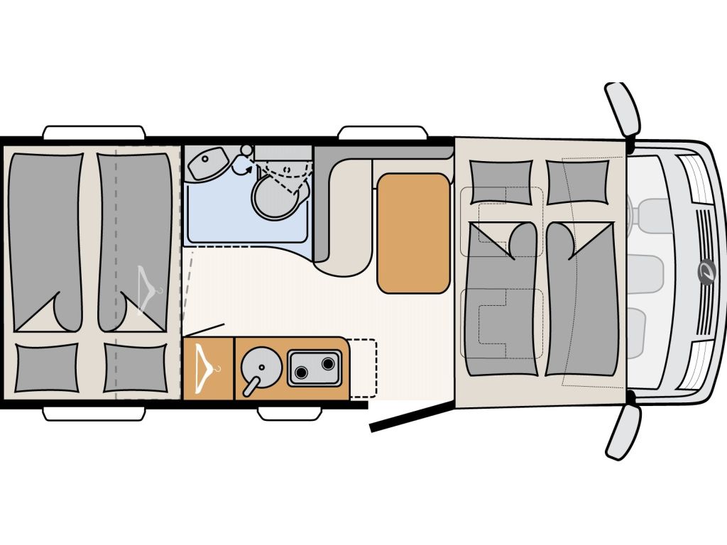 Algunos de los elementos con los que cuenta esta autocaravana integral compacta con capacidad para 4 personas son: