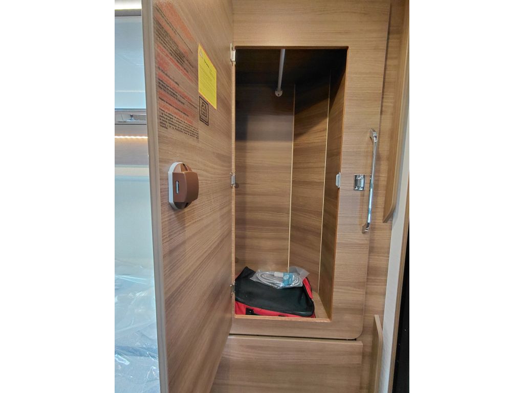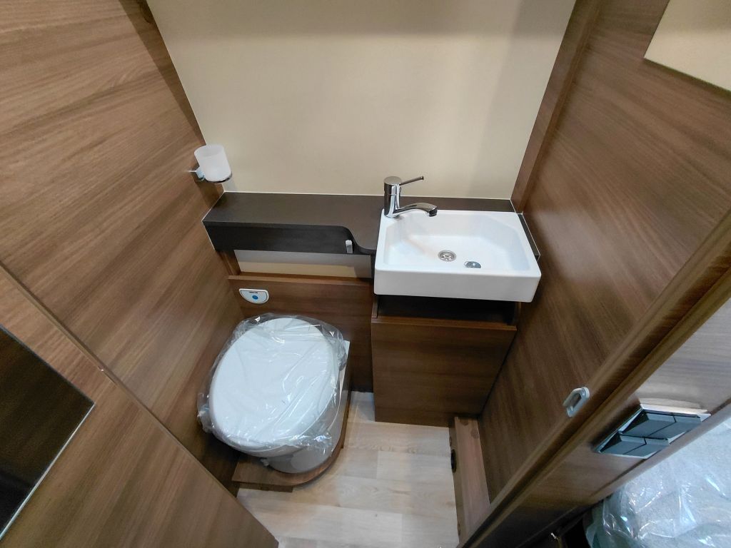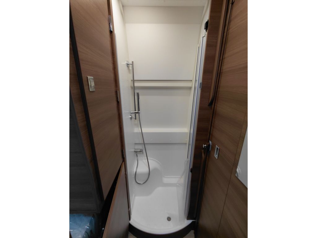 El cuarto de baño de la Rapido V65XL ha sido diseñado para ofrecer máxima funcionalidad y confort en un espacio compacto. Incorpora el sistema MODUL’SPACE, con plato de ducha redondeado, que optimiza el espacio y mejora la comodidad durante la ducha. Dispone de lavabo blanco con revestimiento laminado, mueble alto de almacenamiento con puertas de espejo en las versiones correspondientes y compartimentos de almacenamiento bien distribuidos para mantener todo en orden.