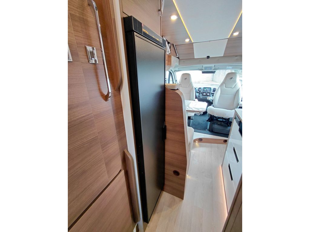 Este modelo destaca por su cuidada construcción y excelente aislamiento, gracias al sistema XHP (Xtrem Hybrid Protect), que combina poliuretano y poliéster con láminas de aluminio para una mayor eficiencia térmica y acústica. El conjunto se completa con un suelo aislado con Styrofoam de 25 mm y base de poliéster, paredes interiores perfectamente adaptadas a la carrocería, techo alveolar monobloque y una junta de estanqueidad en el suelo que protege eficazmente la zona de acceso por la puerta lateral, garantizando durabilidad y confort en cualquier época del año.