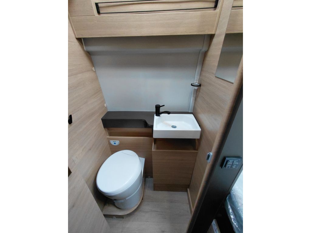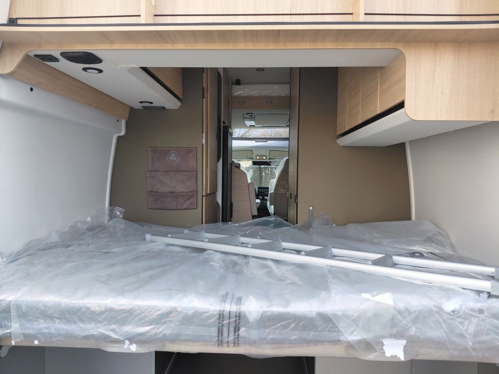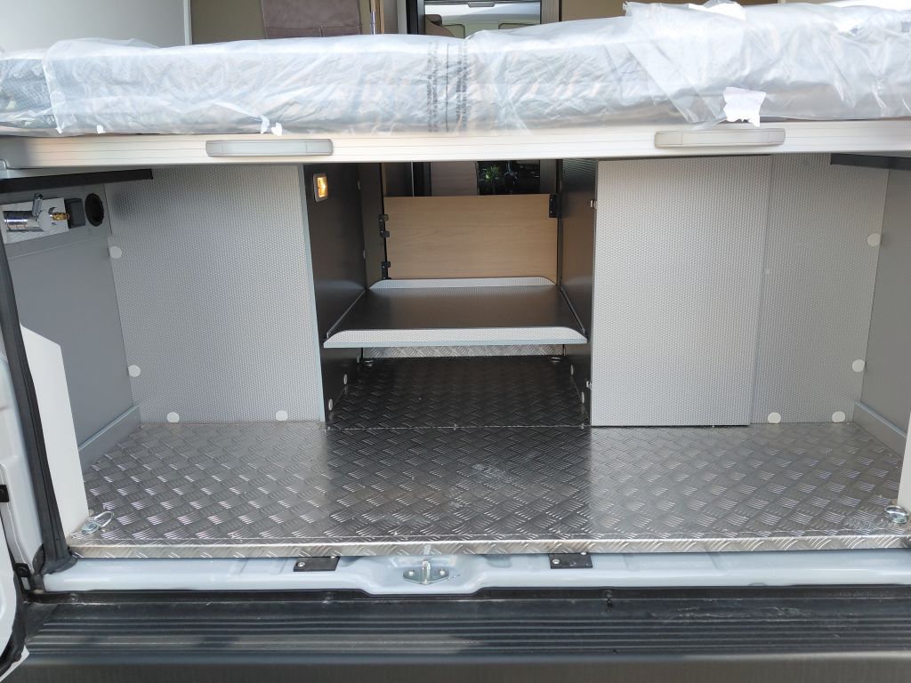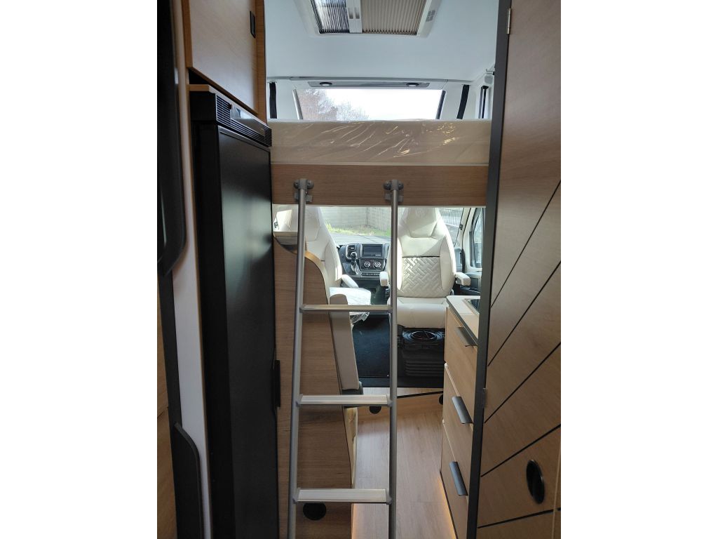 La zona de vivienda está preparada para ofrecer autonomía y comodidad, gracias al precableado para panel solar, que facilita futuras ampliaciones energéticas. El descanso está garantizado con una cama fija equipada con somier de láminas activas multipliegues y un colchón de espuma Bultex de alta resiliencia, diseñado para proporcionar un confort óptimo noche tras noche.