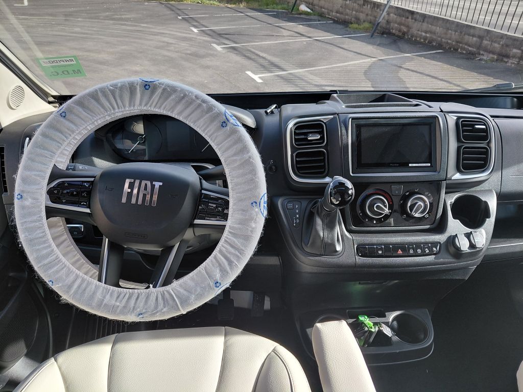 El chasis Fiat Ducato de 140 CV de la Dreamer CamperFive Fun+ ofrece una conducción equilibrada, segura y cómoda, ideal tanto para viajes largos como para desplazamientos diarios. Incorpora control de velocidad con limitador, que facilita la conducción en carretera, así como un moderno salpicadero 50 % digital, que mejora la visualización de la información del vehículo.