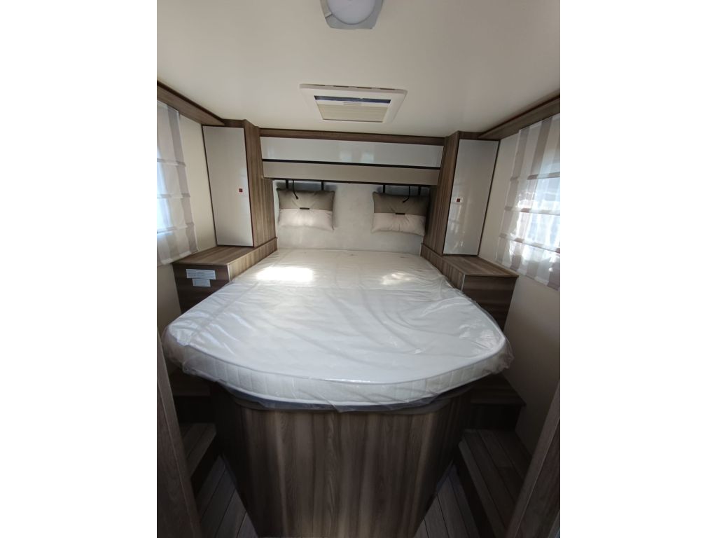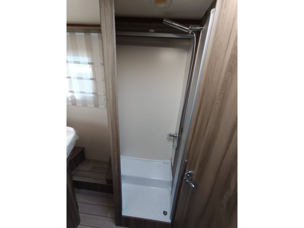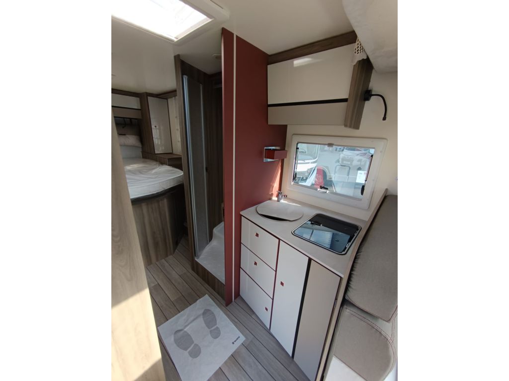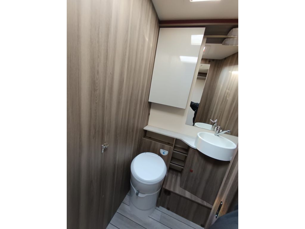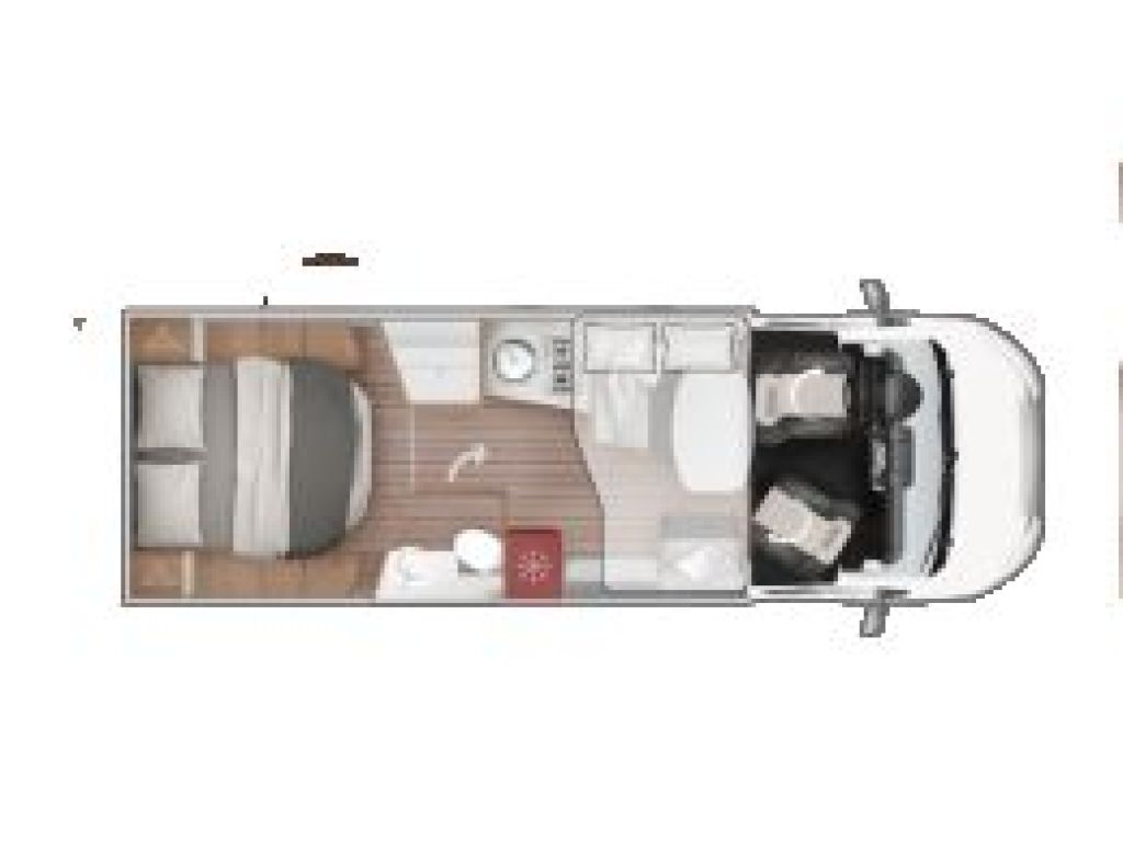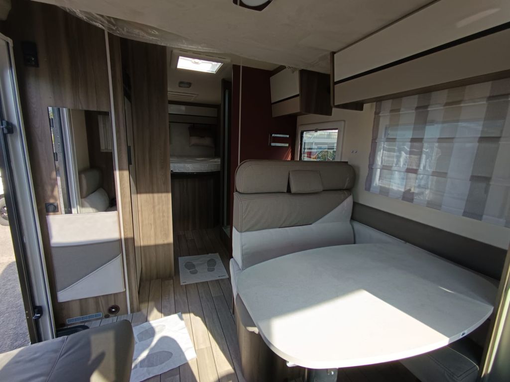 Autocaravana perfilada de 5 plazas con cama isla aseo y ducha separados.