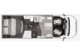 Autocaravana perfilada de 5 plazas con cama isla aseo y ducha separados.